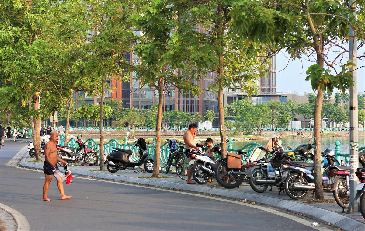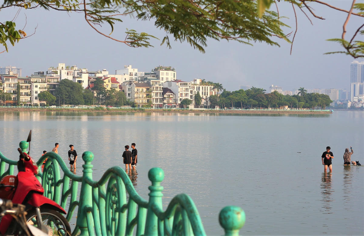 Nắng nóng, nhiều người kéo nhau ra hồ Tây 'giải nhiệt'