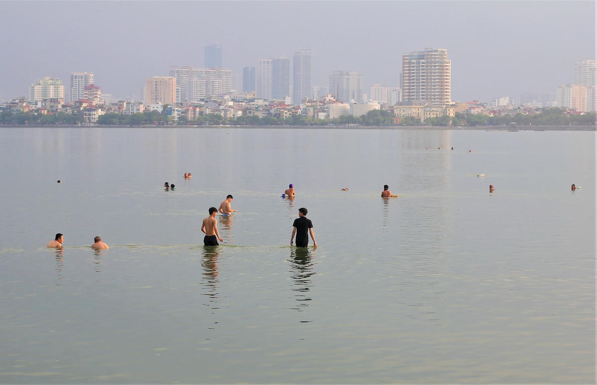 Theo Trung tâm dự báo Khí tượng Thủy văn Quốc gia, nắng nóng kéo dài nhiều, nhiệt độ cao nhất rơi vào khoảng 34 – 35 độ C.Cứ khoảng 16h30 hàng ngày, người dân đổ xô ra góc Tây Hồ để “giải nhiệt” cho ngày hè nóng.Người tới tắm có đủ lứa tuổi từ già trẻ lớn bé. Đa số đều trang bị cho mình những kỹ năng bơi lội để có thể bơi ở mực nước sâu.Số ít trẻ em được trang bị áo phao và tắm ở vùng khá nông cùng bố mẹ. Còn lại thì vẫn xuống tắm dù cho không có phương tiện bảo hộ an toàn.Có những cháu bé tự bơi một mình khi không có người lớn bên cạnh, tiềm ẩn nguy cơ xảy ra tai nạn đuối nước.Chị T.B.P. (35 tuổi, Hà Nội) cho hay: “Dù có thấy biển cấm báo nhưng do thời tiết nóng bức, cộng thêm các bể bơi thì lại đắt đỏ nên tôi đành đưa con ra đây tắm cho gần nhà, biết là nguy hiểm nên tôi và chồng theo sát con mọi lúc tránh trường hợp không may xảy ra”.Lý do người dân kéo nhau đến Hồ Tây tắm phần lớn là do bãi tắm vừa được miễn phí, vừa không cần phải chen chúc.Nhiều người còn đưa thú cưng của mình ra bãi tắm để tránh nóng.Nhiều người tự trang bị cho mình phương tiện bảo hộ như: Chai nhựa rỗng, xốp,... để đảm bảo an toàn.Hồ Tây không chỉ là địa điểm vui chơi, ngắm cảnh mà dần đang trở thành địa điểm “tránh nóng” cho người dân Hà Nội.