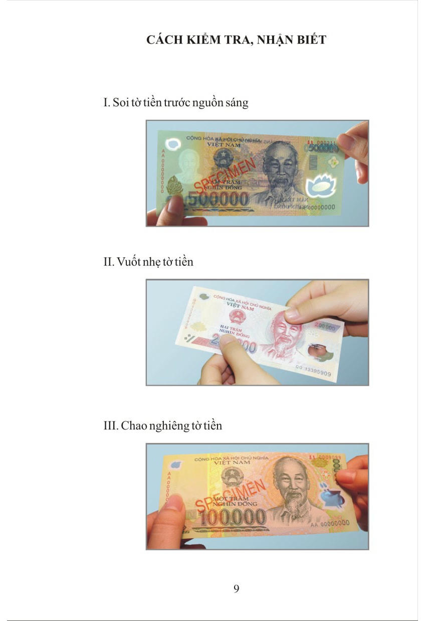 Ngân hàng Nhà nước lưu ý cần phải kiểm tra nhiều yếu tố bảo an (tối thiểu 3 đến 4 yếu tố) để xác định là tiền thật hay tiền giả.
