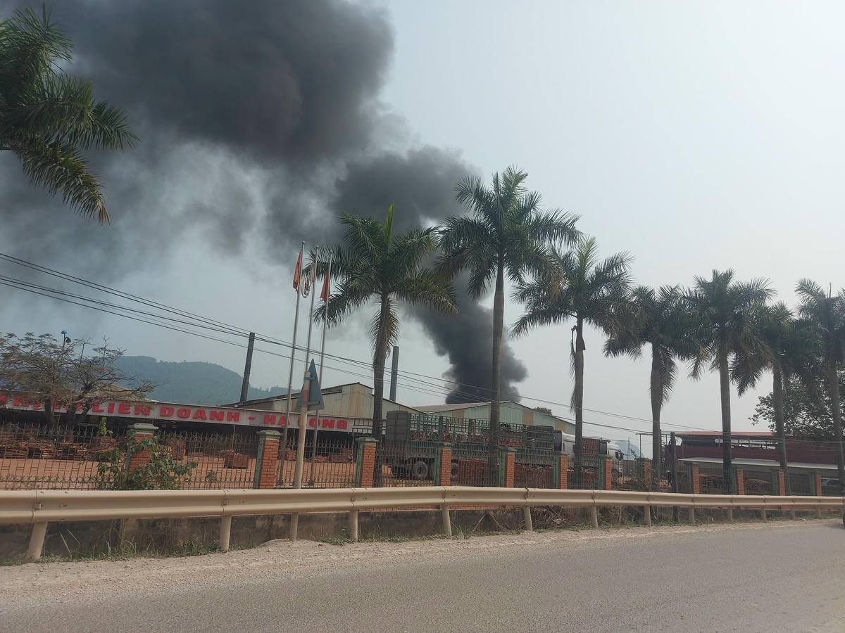 Cụ thể, vào thời điểm 9h30’ sáng nay (ngày 10/3), khi di chuyển trên tuyến QL 217, chúng tôi phát hiện những tầng khói đen bay lên ngợp trời, có dấu hiệu như một vụ cháy nhà xưởng.