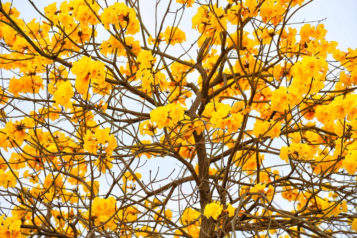 'Ngất ngây' với con đường hoa phong linh nở vàng rực rỡ ở Hà Nội