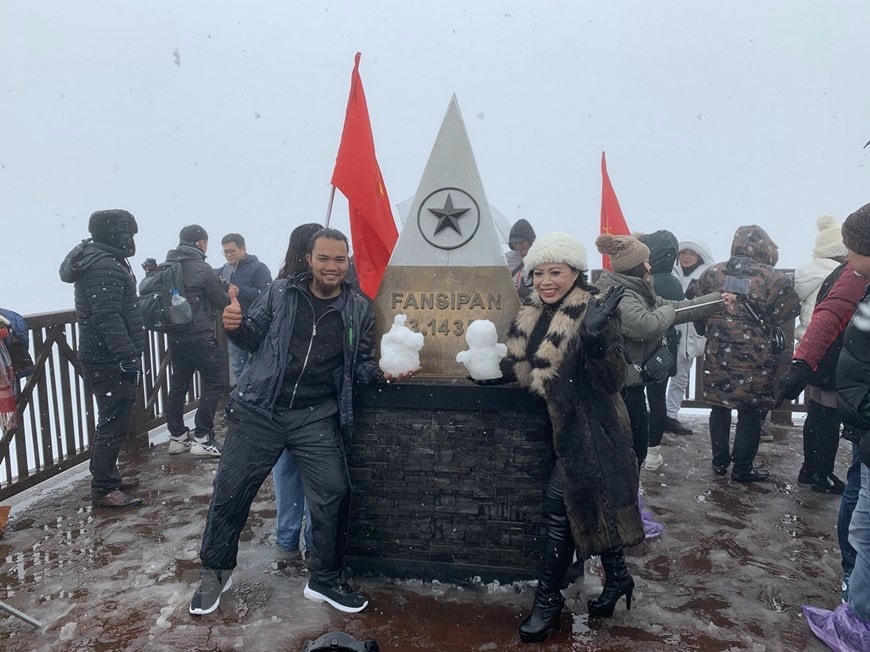 Sáng 29/12, nhiệt độ trên đỉnh Fansipan, thị xã Sa Pa, tỉnh Lào Cai xuống thấp, tuyết lại tiếp tục rơi. Nhiều khách du lịch đã lên đỉnh Fansipan để chiêm ngưỡng hiện tượng thiên kỳ thú này.