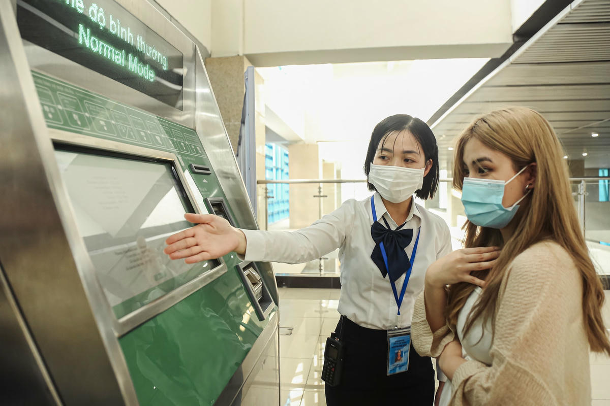 Hàng nghìn xe máy xếp hàng dài chật kín sảnh B tầng 1 tại nhà ga Cát Linh.Ngoài ra, hàng trăm người vẫn phải chờ tới lượt gửi xe lên trải nghiệm tàu.Đến 15 giờ nhà ga không còn chỗ để xe, nhân viên phải dán giấy thông báo cho hành khách.Công tác phòng chống dịch bệnh Covid- 19 vẫn đảm bảo đúng quy định.Hàng dài người xếp hàng chờ đến lượt lấy vé.Nhân viên nhà ga liên tục phải sử dụng loa để nhắc nhở hành khách đứng giãn cách.Dòng người đông nghẹt thở, chen chúc nhau trong ngày cuối miễn phí tàu đường sắt trên cao Cát Linh - Hà Đông.Bên cạnh đó, nhiều người không còn chỗ ngồi buộc phải đứng ngay sát cửa ra vào.Trên chuyến tàu, nhiều em nhỏ thích thú khi được đi tàu điện.Cũng trong chiều nay, rất nhiều người muốn mua vé tàu theo tháng để sử dụng tàu làm phương tiện đi làm, đều được hướng dẫn tỷ mỉ.Sau khi chọn điểm đến hành khách sẽ đưa tiền vào máy mua vé.Sau khi thanh toán hành khách sẽ được nhận vé tại cây để quét mã đi lên tầng 3 đợi tàu.Theo đó, một số khách hàng không biết mua vé tại cây bán vé thì có thể đến quầy sẽ có nhân viên hỗ trợ bán vé, đảm bảo hành khách có một trải nghiệm tốt nhất.