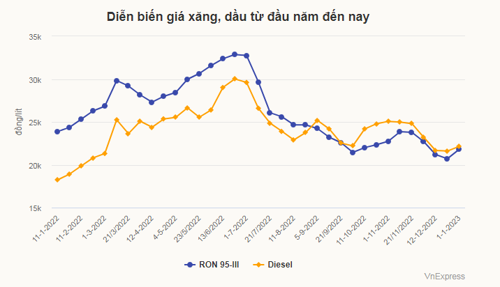Việc tăng giá ở kỳ điều hành lần này do giá thế giới biến động trong 10 ngày vừa qua, và thuế bảo vệ môi trường với xăng, dầu điều chỉnh từ đầu năm 2023. Theo Nghị quyết của Uỷ ban Thường vụ Quốc hội, mức thuế này áp dụng với mỗi lít xăng (trừ ethanol) là 2.000 đồng, dầu diesel 1.000 đồng, dầu hoả 600 đồng, dầu mazut 1.000 đồng và dầu nhờn, mỡ nhờn là 1.000 đồng một kg.