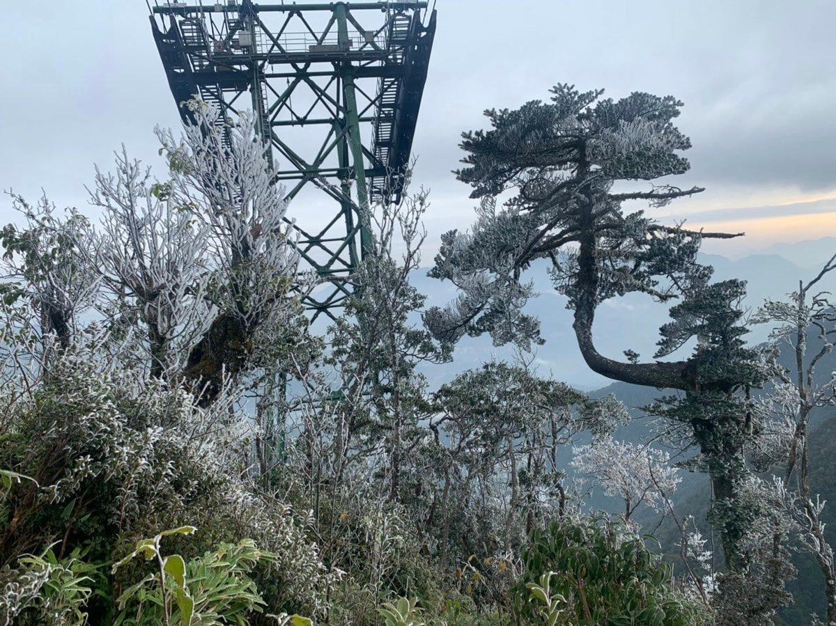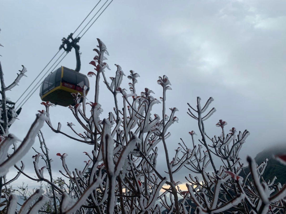 [Nhiệt độ dưới 0 độ, băng giá và sương muối phủ kín đỉnh Fansipan]