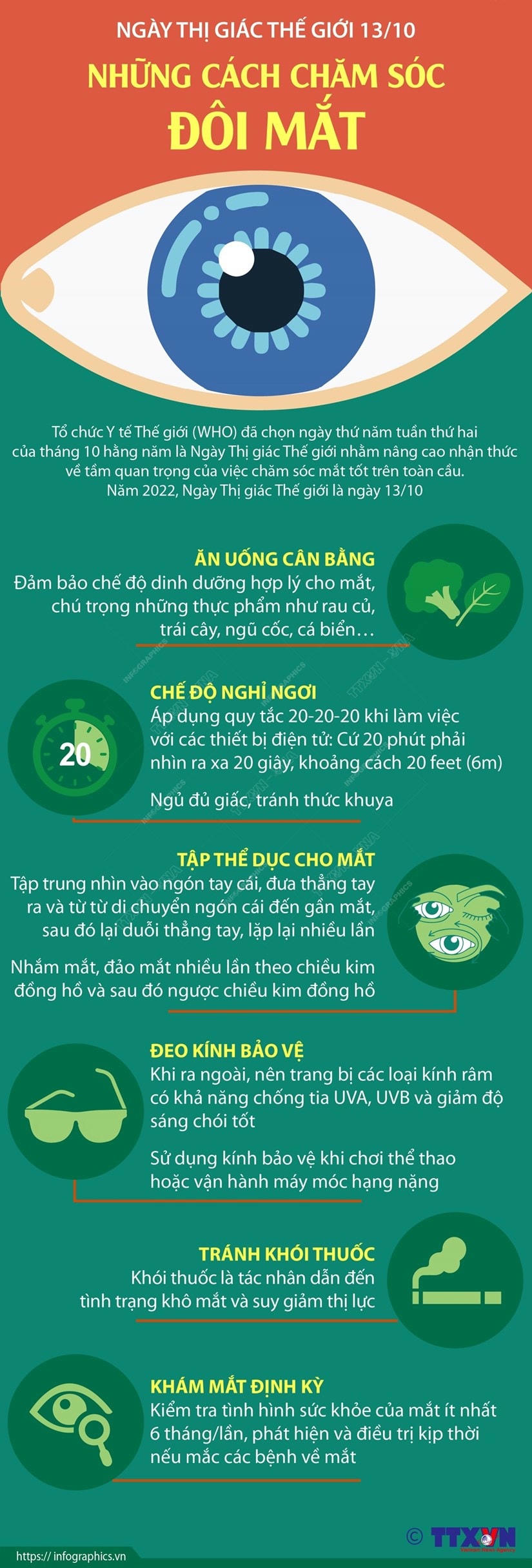 Tổ chức Y tế Thế giới (WHO) đã chọn ngày thứ Năm tuần thứ hai của tháng 10 hằng năm là Ngày Thị giác Thế giới, nhằm nâng cao nhận thức về tầm quan trọng của việc chăm sóc mắt tốt trên toàn cầu.