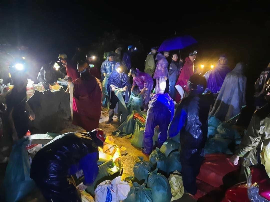 Trong khi đó, tại xóm 4 xã Quỳnh Tam, mưa to, gió lớn do hoàn lưu bão số 4 đã khiến một đoạn đê có nguy cơ bị vỡ. Chính quyền địa phương đã huy động nhân dân cùng trắng đêm đội mưa để gia cố đê.