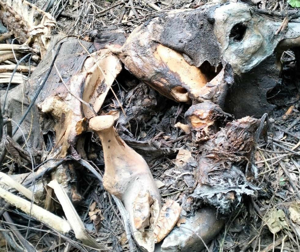 Một trong 2 con voi từng vào rẫy của của người dân ăn hoa màu đã được xác định chết không rõ nguyên nhân, khi người dân phát hiện thì cá thể voi này đã bị phân huỷ.