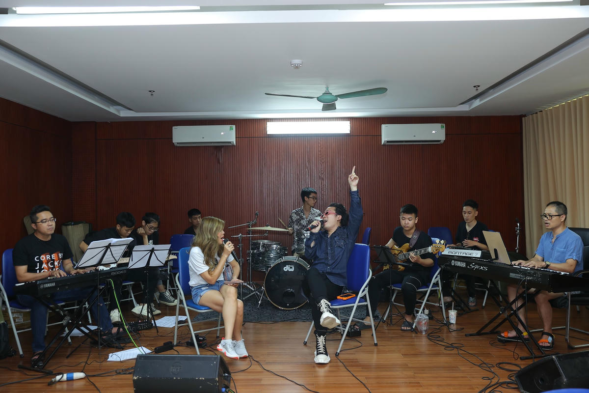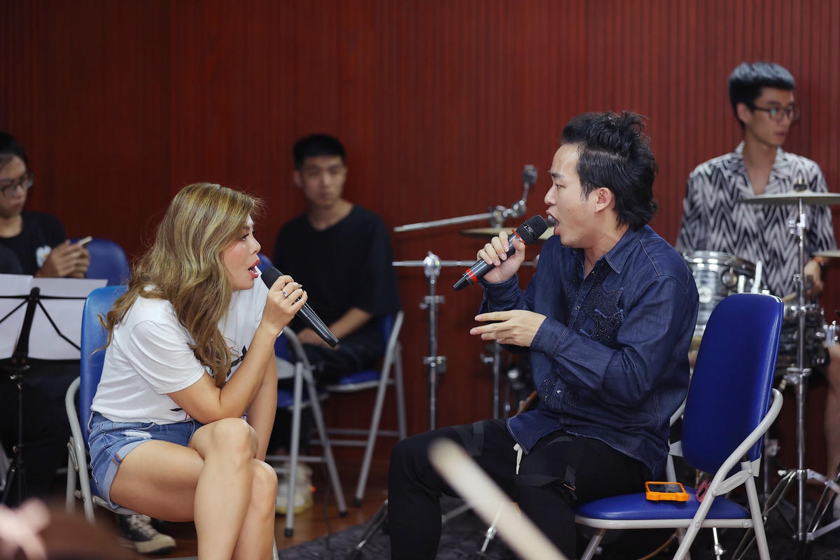 Hai ca sĩ say sưa tập luyện. Clip: Hoà Nguyễn.