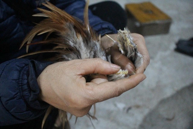 Bà vừa phân loại lông gà vừa nói: "Công đoạn này chủ yếu là người già làm vì nó tốn thời gian lắm. Phải kiên trì ngồi thì mới làm được, người ta hay gọi đây là nghề của những bà già, ở làng cũng còn mấy người làm đâu".