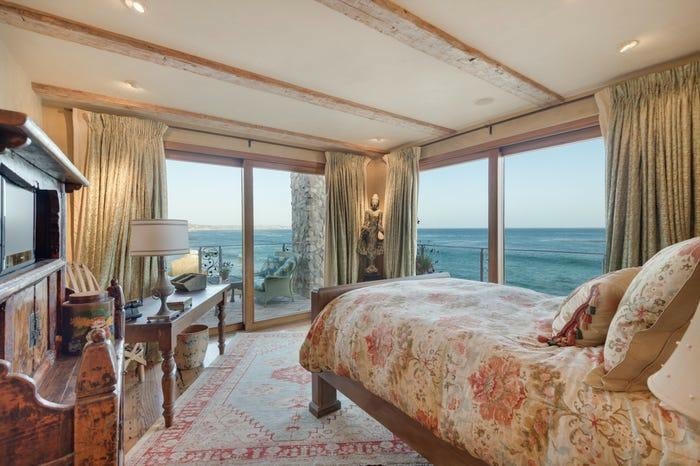 Phòng ngủ chính có lò sưởi và ban công nhìn thẳng ra biển. Nội thất của phòng ngủ có tông màu trắng là chủ đạo kèm các ô cửa được thiết kế rộng để đưa không khí trong lành của vùng biển vắng vào trong.