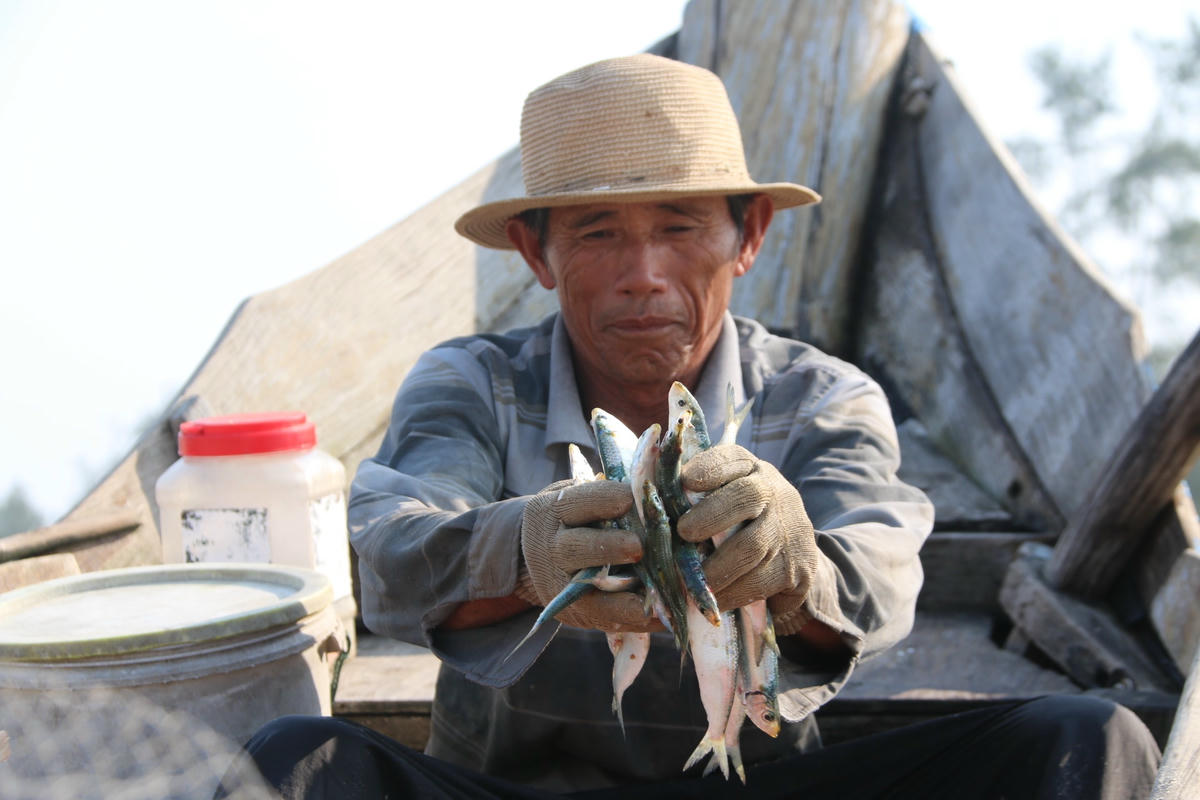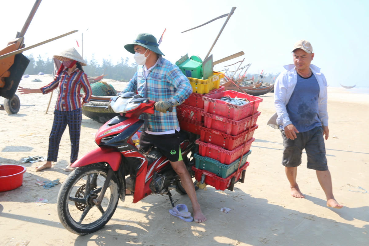 Chúng tôi ghé thăm bãi biển thuộc thôn Trung Khê (xã Hải Khê, Hải Lăng, Quảng Trị). Ngoài khơi, những chiếc thuyền nan của ngư dân bắt đầu trở về sau một hành trình đi biển đánh bắt thủy sản. Khi thuyền vừa cập bến, mở khoang đựng cá, một ngư dân nói vọng xuống: “Hôm nay biển động rồi, cá kém hơn hôm qua. May tầm trưa gặp được một đàn (đàn cá trích - PV) nên cũng gỡ gạc lại đôi chút”.