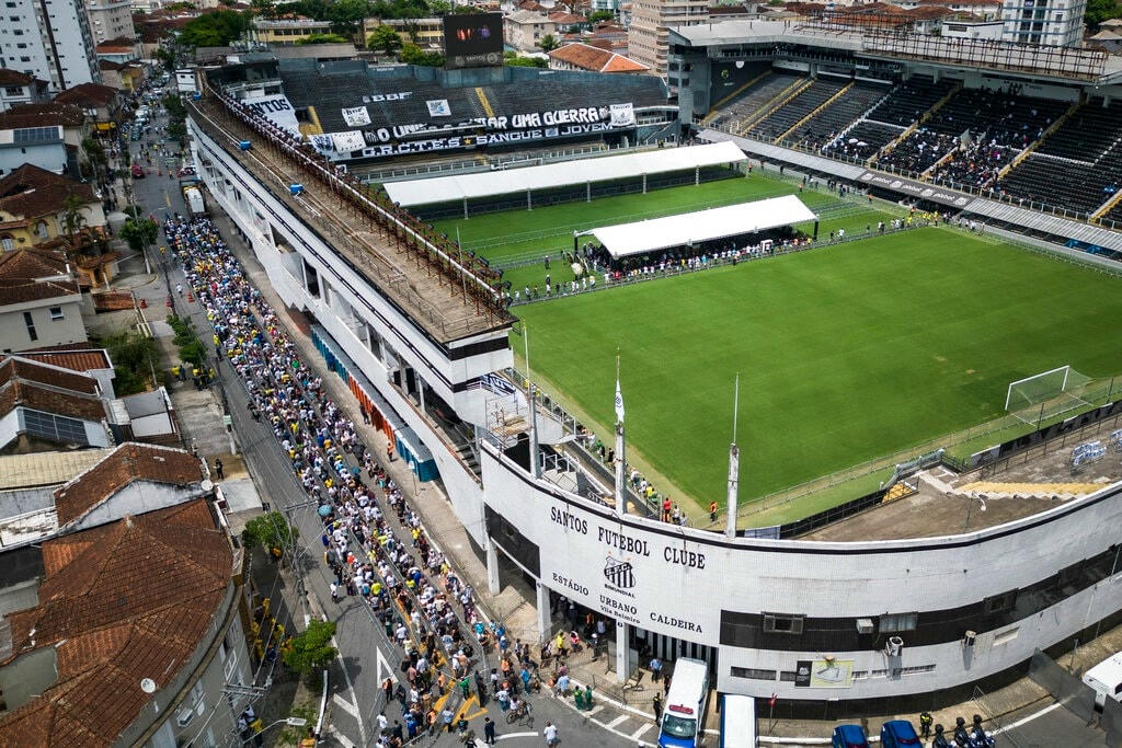 Đông đảo người hâm mộ đã đến sân vận động Vila Belmiro để tiễn biệt huyền thoại bóng đá người Brazil Pele.