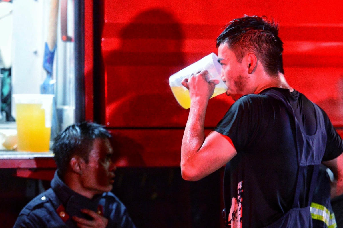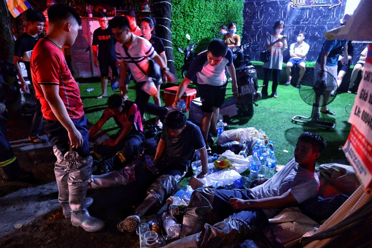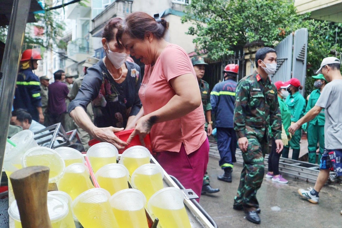 Người dân chuẩn bị đồ ăn tiếp sức cho cảnh sát chữa cháy chung cư mini