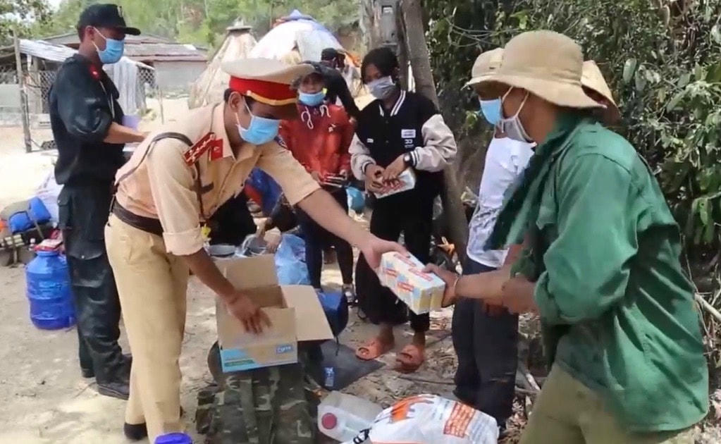 Họ mang theo chăn chiếu, xoong nồi nhưng không còn một chút lương thực. Cả đoàn đói lả khi đến chốt kiểm soát. Lực lượng CSGT đã lấy mì gói, sữa tại chốt để giúp cho bà con chống đói.