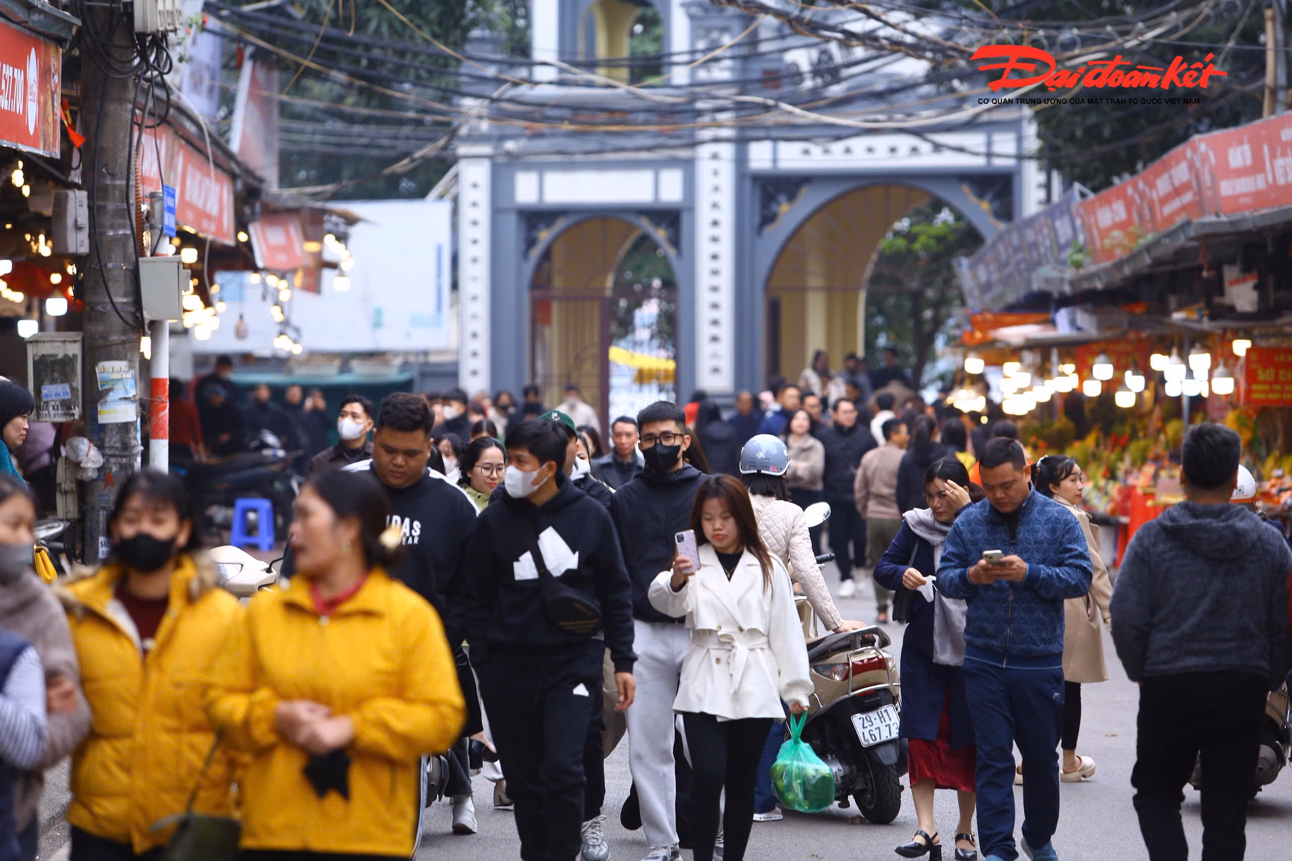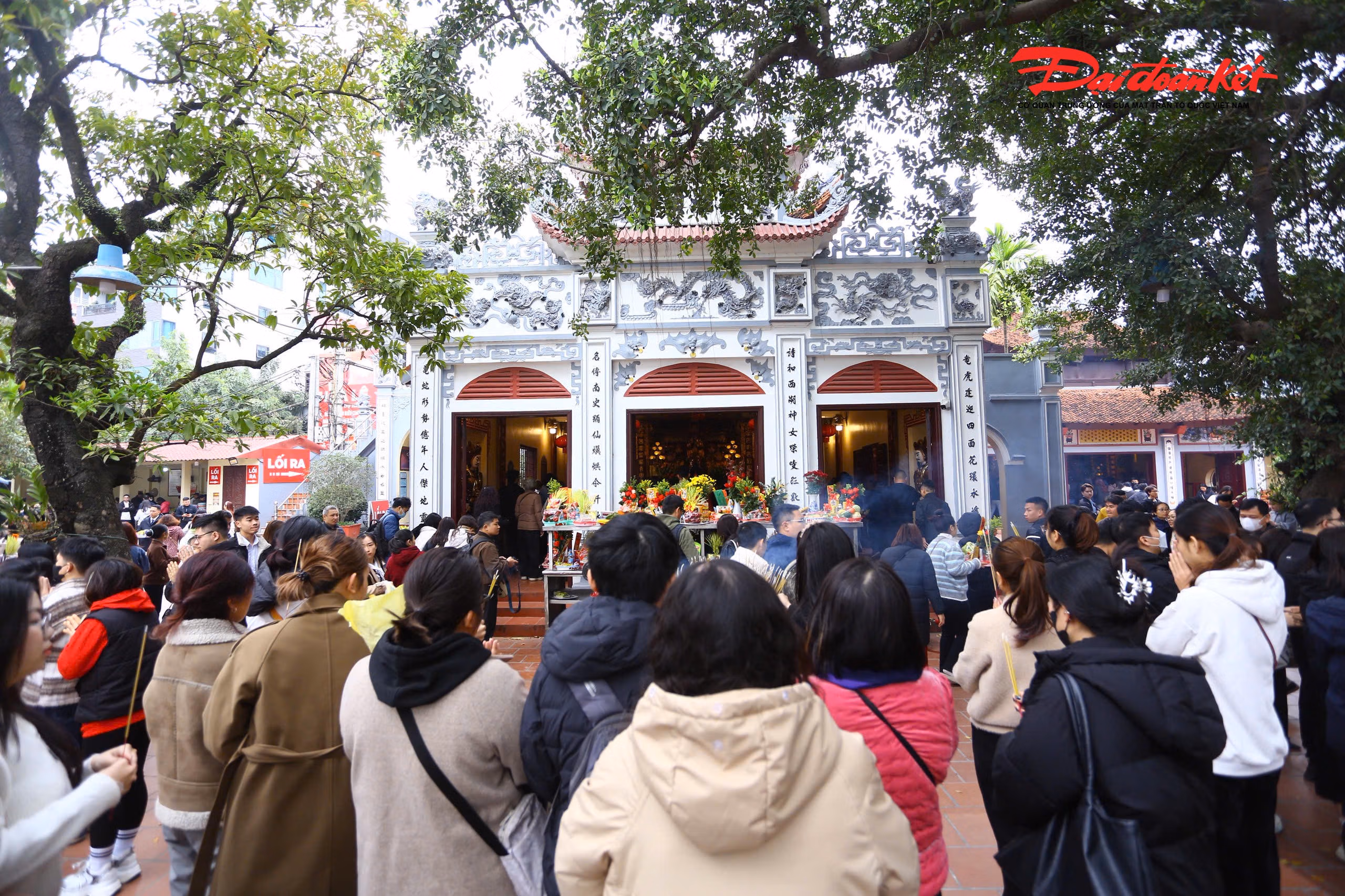 Khu vực sân chính của Phủ Tây Hồ chật kín người dân xếp hàng dâng lễ, vái vọng.