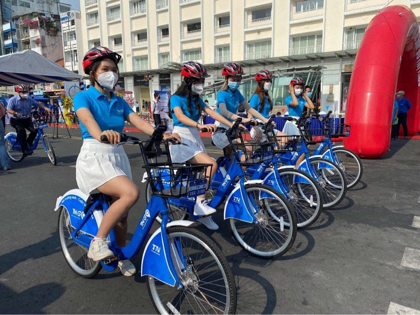 Sáng ngày 16/12, hàng trăm người dân ở khu vực trung tâm Quận 1 (TP HCM) vui mừng khi dịch vụ cho thuê xe đạp lần đầu xuất hiện ở đây. Sau một tuần thí điểm chạy thử, nay người dân chính thức được sử dụng dịch vụ có nhiều tiện ích, không ô nhiễm môi trường và khá văn minh này.
