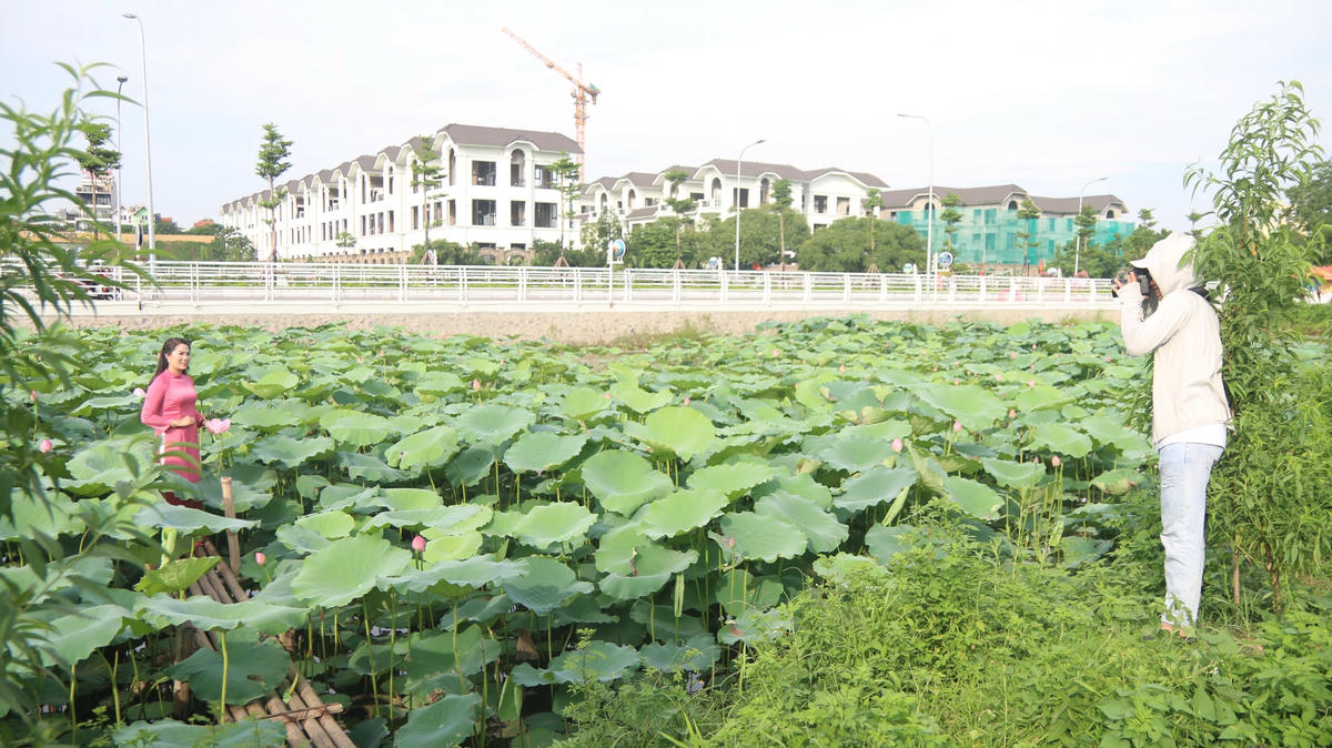 Cứ độ đầu tháng 6, những đầm sen tại Tây Hồ bắt đầu nở rộ thu hút đông đảo người dân đến chụp ảnh. Tại đây có đầy đủ các dịch vụ từ thuê quần áo, trang điểm đến chụp ảnh.Chị Nguyễn Thanh Tâm (Người dân tại Bắc Giang) chia sẻ: "Từ 7h sáng chúng tôi bắt đầu khởi hành đến Hà Nội. Sau khi nghỉ trưa, gia đình chúng tôi tổ chức đến đầm sen chụp ảnh. Đây là lần đầu tiên chúng tôi có cơ hội tham quan nơi đây nên cảm thấy rất thích thú và chắc chắn sẽ quay trở lại trong dịp gần nhất".Không chỉ người dân tại Bắc Giang, chị Nguyễn Thị Khoa (người dân tại Hải Dương) cũng rất thích thú trước mùa sen tại Thủ đô. Chị Khoa cho biết: "Thực ra chúng tôi đến công viên nước để cho trẻ em chơi, tình cờ thấy được đầm sen ở đây rất đẹp nên ghé vào luôn". Nếu du khách đến các đầm sen tại Hồ Tây từ sáng sớm, mọi người sẽ được chứng kiến quá trình làm trà sen ướp xổi của người nông dân tại làng Nhật Tân.Những người nông dân tại vườn hái sen từ sáng sớm.Theo ông Trọng (chủ đầm sen tại Tây Hồ), đây là thời điểm sen rộ nhất và khách nội thành thường đến vào cuối tuần. Các ngày khác vắng vẻ hơn, đa số là khách từ nhiều tỉnh đổ về. Không chỉ mang lại nguồn thu từ dich vụ chụp ảnh, nơi đây còn giống như một cánh đồng để người dân Tây Hồ làm trà sen ướp xổi. Một phần số sen trong hồ được cắt đi bán, giá trên thị trường dao động từ 120.000 - 150.000 đồng/bó.Từ hồ sen, người dân có thể thấy được quang cảnh phố đi bộ Trịnh Công Sơn ở bên cạnh.Thời tiết tại Hà Nội trong những ngày gần đây khá nhiều nắng thích hợp cho việc chụp hình.Các chủ đầm sen cũng có nhiều đạo cụ như quạt, nón, khăn... để phục vụ nhu cầu. Mức giá chụp ảnh tại đây khá đa dạng tính theo từng bộ dao động từ 300.000 - 600.000 đồng.Các bạn trẻ Hà Nội tranh thủ đi vào những ngày thường để vắng vẻ và không phải chờ có chỗ chụp ảnh.