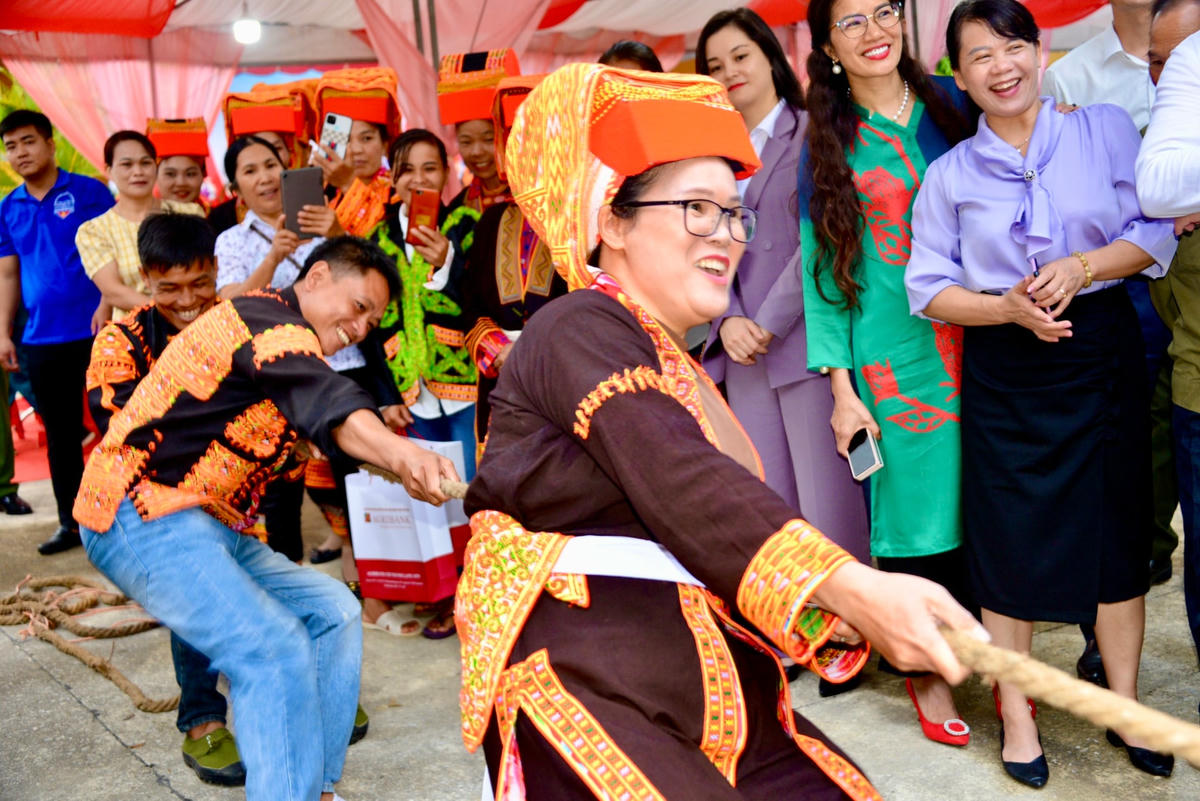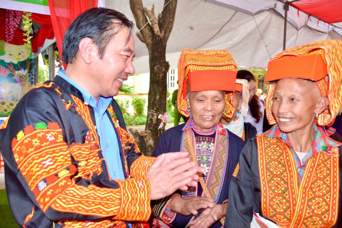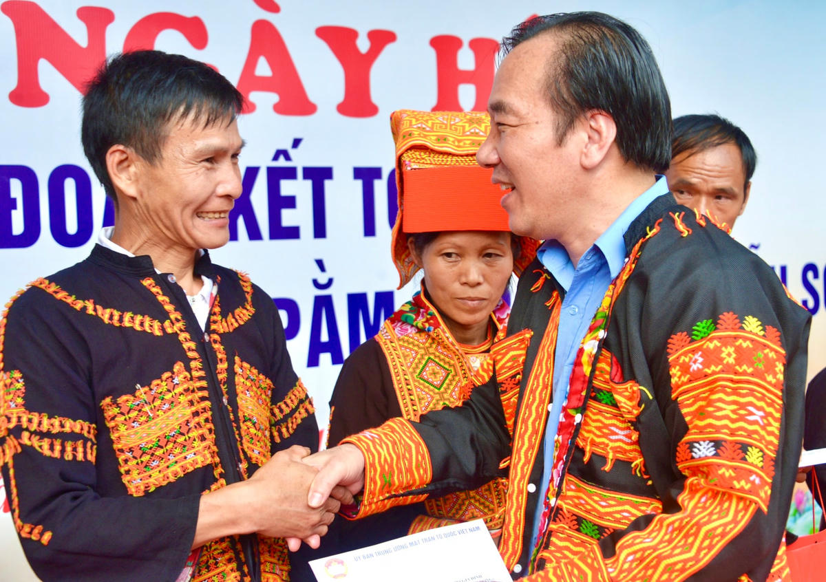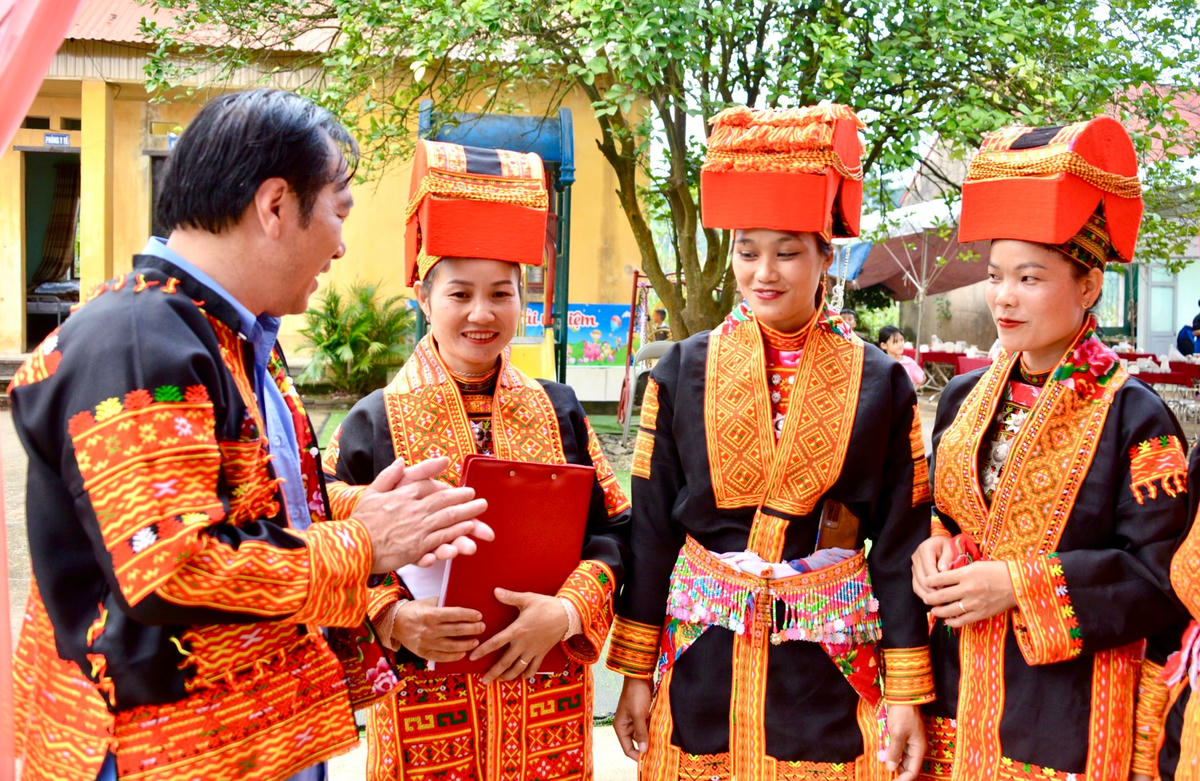 Ngay sau phần lễ, các đại biểu đã hòa cùng với không khí vui tươi, sôi nổi của Ngày hội Đại đoàn kết liên khu dân cư Pó Pằm - Trà Ký và thưởng thức những tiết mục văn nghệ “cây nhà lá vườn” mang đậm nét đặc trưng của người Dao Lù Gang.