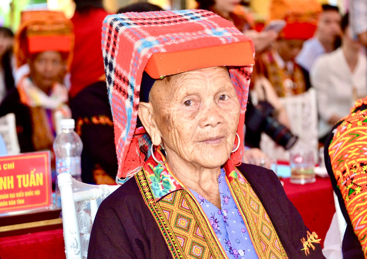 Biết đoàn đại biểu Trung ương dự Ngày hội Đại đoàn kết toàn dân tộc với thôn Pó Pằm và Trà Ký, cụ bà Triệu Thị Múi (84 tuổi) ăn vội bát cơm trưa, đi bộ gần 5 km đường rừng xuống Trường Mầm non xã Mẫu Sơn - địa điểm tổ chức.