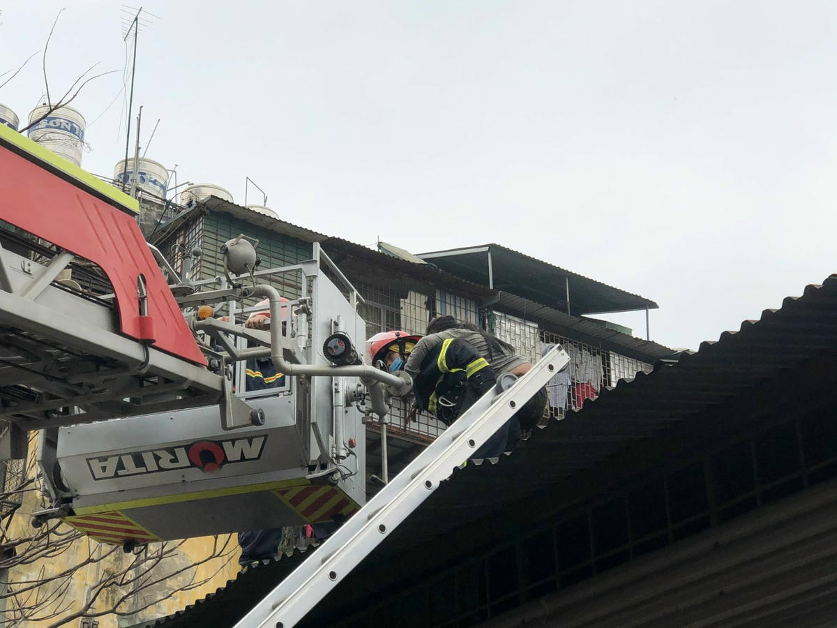 Lúc xảy ra vụ cháy, có một cháu nhỏ bị mắc kẹt trên tầng tum của căn nhà.