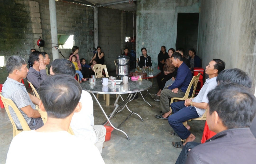 Nằm sâu trong ngõ nhỏ, căn nhà cấp 4 của gia đình anh Nguyễn Văn Đạo rất đông anh em, bà con làng xóm đến thăm hỏi, động viên, chia sẻ với gia đình.