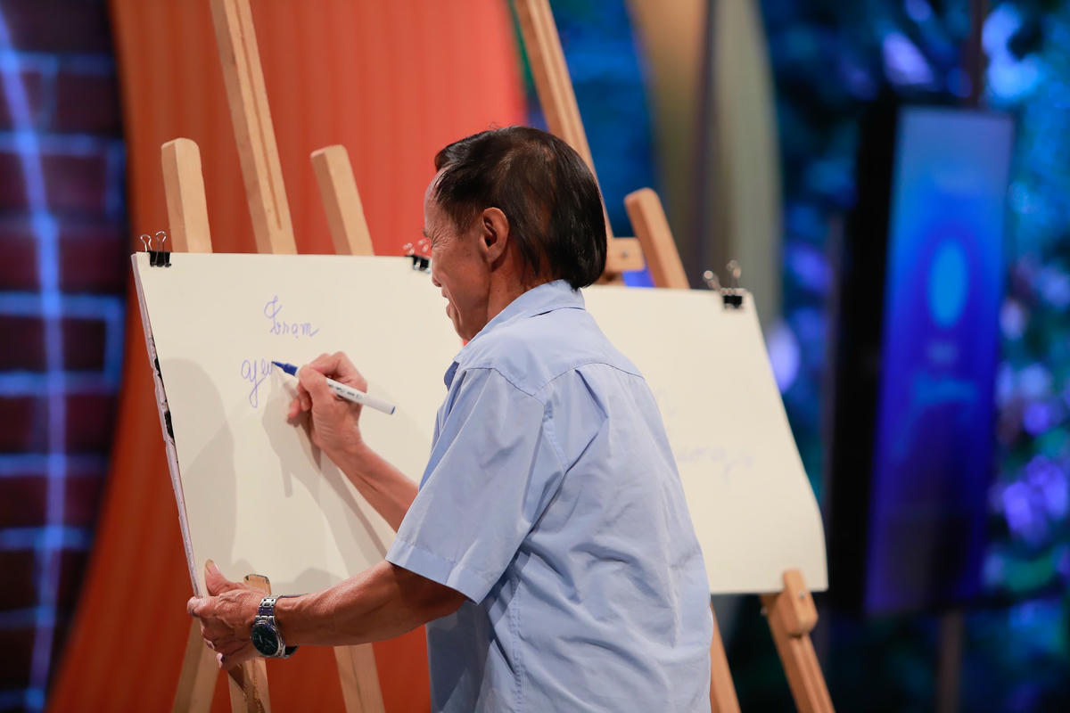 Xuất hiện trên sân khấu "Trạm yêu thương" với tấm bảng viết và cây bút, hai đồ vật quen thuộc trong các buổi dạy học, ông Dũng xúc động viết 3 từ “Trạm yêu thương”. Ông chia sẻ mình dạy Toán, không dạy Tiếng Việt nhưng lựa chọn tên chương trình, bởi hai từ “yêu thương” luôn khiến ông trân trọng và đầy cảm xúc khi được viết ra. Đó cũng là một trong ba từ khoá mà ông tâm đắc nhất trong quá trình dạy học của mình: “Kiên trì, tự hào và yêu thương”.