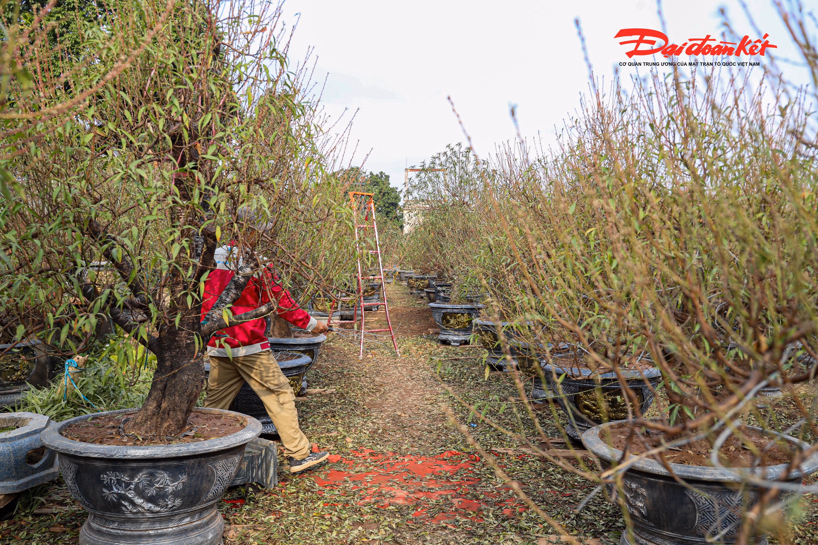 Những ngày cuối năm, khi gió lạnh tràn về trên bãi bồi ven sông Hồng, làng đào Nhật Tân (phường Tây Hồ, Hà Nội) lại bước vào giai đoạn nhộn nhịp nhất trong năm. Trên khắp các vườn đào, người trồng đào tất bật tuốt lá, chăm sóc từng gốc cây, căn chỉnh thời điểm nở hoa sao cho kịp khoe sắc đúng dịp Tết Nguyên đán.