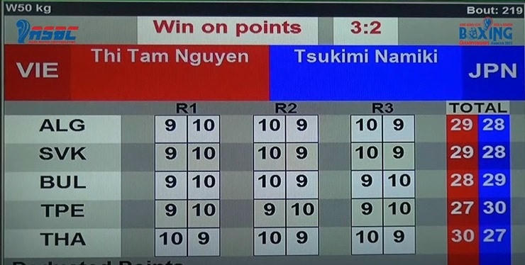 Ở trận chung kết hạng cân 50 kg nữ giải Boxing vô địch châu Á (ASBC Elite Boxing Championship) 2022 diễn ra tối ngày 11/11 tại Jordan, võ sĩ người Việt Nam Nguyễn Thị Tâm đối đầu với tay đấm người Nhật Bản Tsukimi Namiki.