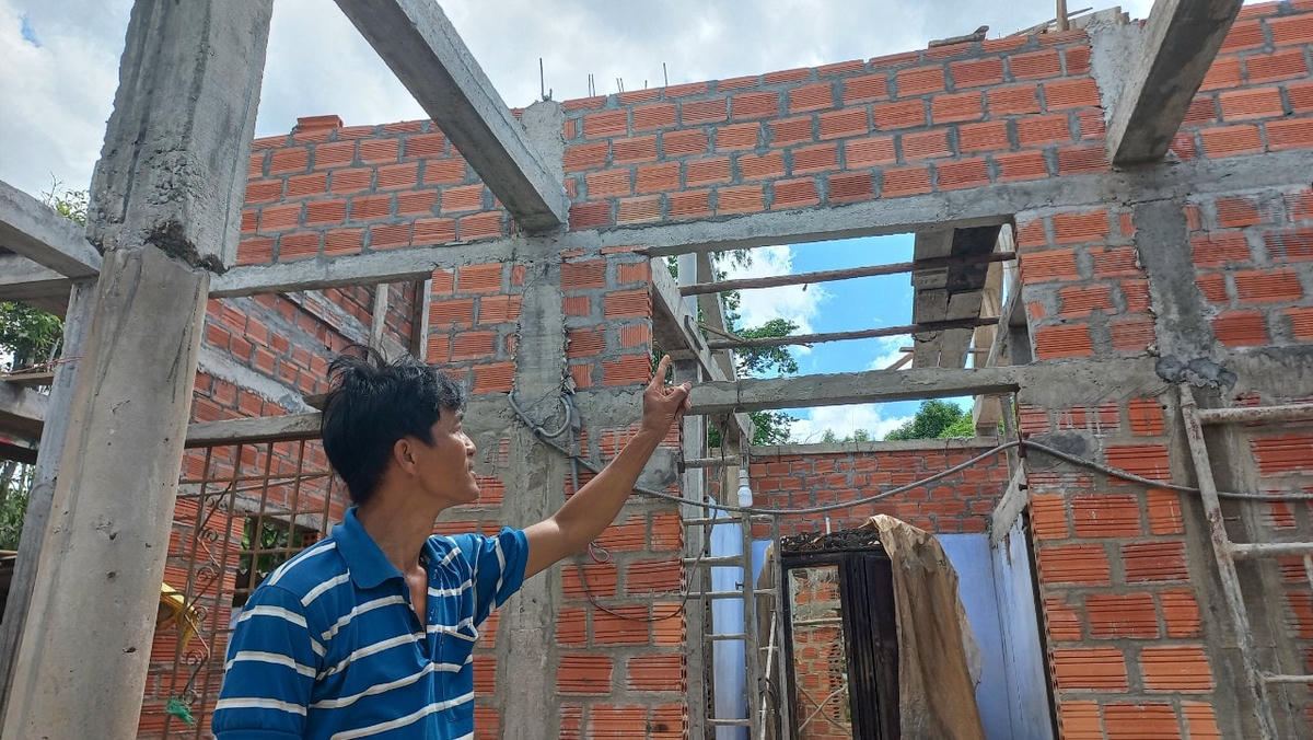 Rời nhà chị Biên, chúng tôi đến thôn Tây Chánh, xã Hải Trường (Hải Lăng) để gặp một trường hợp khác cũng mới được khởi công xây nhà Đại đoàn kết trong tháng 4/2022 - hộ bà Nguyễn Thị Chắt. Bà Chắt năm nay 80 tuổi vì bệnh tình không thể trò chuyện với chúng tôi, anh Đoàn Văn Giai (44 tuổi - con trai bà Chắt) chia sẻ, nhờ có sự quan tâm của chính quyền địa phương, đặc biệt là Ủy ban MTTQ tỉnh Quảng Trị đã hỗ trợ nên anh quyết tâm vay mượn thêm để cất dựng lại căn nhà cũ của gia đình.