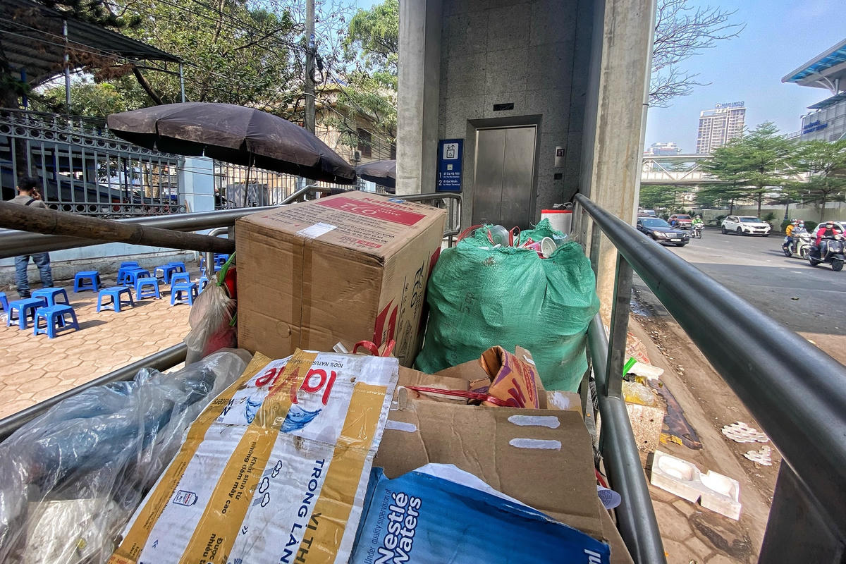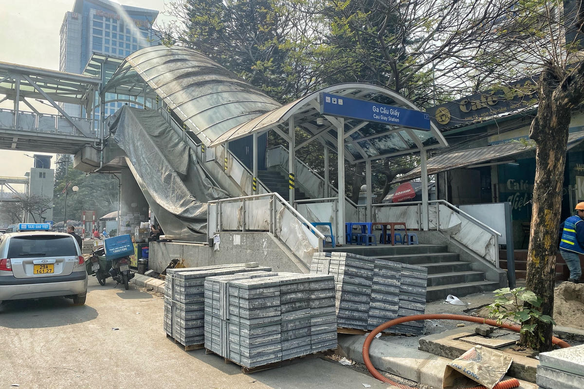 Theo ghi nhận của PV Báo Đại Đoàn Kết, tại khu vực nhà ga Cầu Giấy của tuyến đường sắt đô thị Nhổn- Ga Hà Nội, bỗng bị một quán ăn bên cạnh bày bàn ghế lên hẳn khu vực lối lên nhà ga.Những bộ bàn ghế này chiếm trọn lối lên nhà ga Cầu Giấy. Khu vực gầm lối lên nhà ga cũng biến thành nơi bán hàng.Khói bay nghi ngút do người dân nướng thịt ngay dưới thang máy nhà ga Cầu Giấy. Khu vực thang máy dành cho người khuyết tật trở thành nơi chứa đồ đạc, hàng hóa của những người bán hàng.Đồ đạc được vứt nhếch nhác, mất vệ sinh. Trước những hình ảnh nhếch nhác này, ông Lê Trung Hiếu, Phó Trưởng Ban quản lý dự án Đường sắt đô thị Hà Nội (MRB) cho hay, đơn vị đã có văn bản đề nghị tới các phường, quận hỗ trợ, tuyên truyền trên hệ thống phát thanh. Công an và thanh tra các phường, quận cũng đã đi xử lý, nhưng khi vắng bóng lực lượng chức năng thì lại tái diễn vi phạm."Nhiều lần bảo vệ đã can thiệp nhắc nhở, tuy nhiên có lần còn bị người dân dọa, thậm chí là đánh. Thời gian tới chúng tôi sẽ tiếp tục phối hợp với chính quyền địa phương nhằm chấm dứt tình trạng này", ông Hiếu cho hay.
