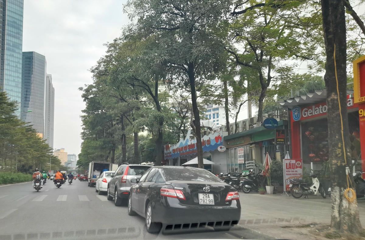 Vỉa hè phố Đào Tấn dài hàng trăm mét cũng được nhà hàng Thế giới Hải sản và nhà hàng gà Bảo Ngọc trưng dụng làm bãi đỗ xe.