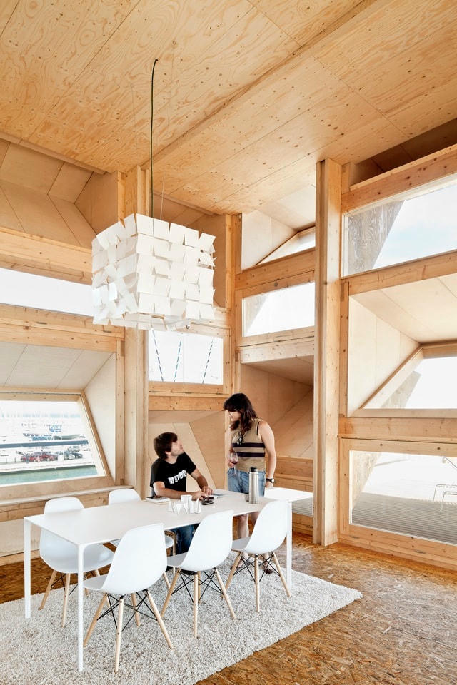 Bên trong của tòa nhà được thiết kế tối giản với sàn bằng gỗ và nội thất nhỏ gọn tạo không gian thoáng đãng phù hợp với kiến trúc bên ngoài.