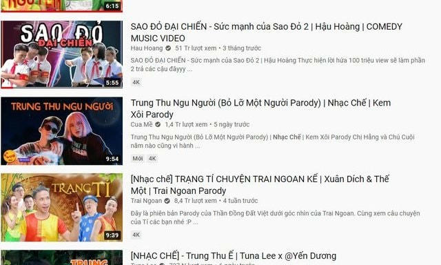 Thực tế, không chỉ đến ca khúc “Doraemon”, nhạc chế mới phổ biến. Trước đó, nhiều MV nhạc chế khác cũng đạt lượng view mơ ước, bởi ca từ vui nhộn, dễ thuộc, dễ nhớ. Một thời, các ca khúc nhạc chế “chiếm lĩnh” bảng xếp hạng Youtube. Các ca khúc “Những chị đại học đường” của Hậu Hoàng, “Sau sáu rưỡi” của Trung Ruồi và “Để Mị nói cho mà nghe” (phiên bản chế của BB Trần) nhanh chóng được lan truyền với “tốc độ ánh sáng”.