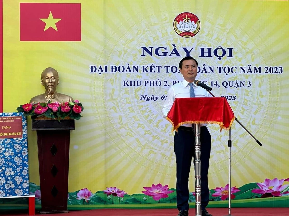 Ngày 6/11, Uỷ ban MTTQ Việt Nam TP HCM cho biết, Ban Công tác Mặt trận Khu phố 2, Phường 14, Quận 3, TP HCM vừa tổ chức Ngày hội Đại đoàn kết toàn dân tộc năm 2023. Phó Chủ tịch UBND Thành phố Bùi Xuân Cường đã đến dự.
