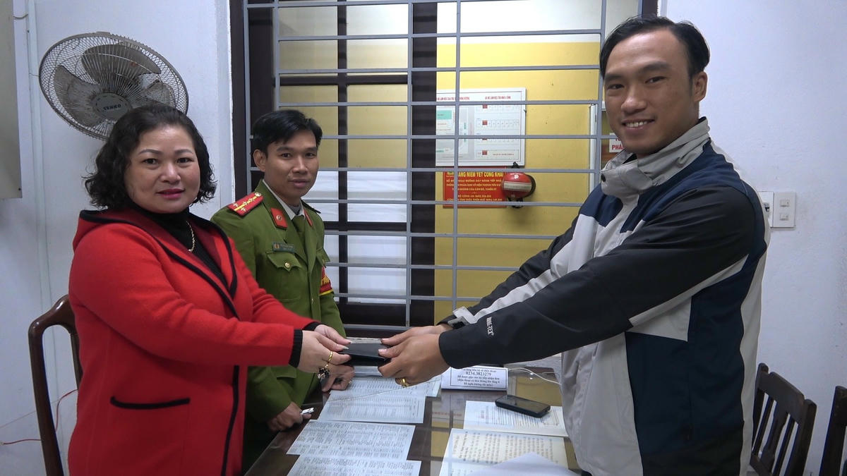 Nhận lại tài sản, anh Phúc vui mừng và gửi lời cảm ơn đến bà Linh và Công an thành phố Huế đã giúp anh tìm lại được tài sản đã đánh rơi.