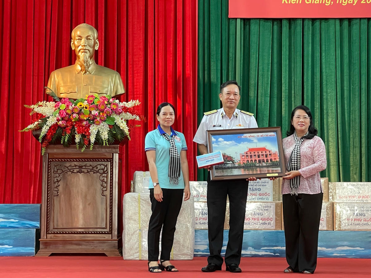 Đoàn đại biểu TP HCM tặng quà cán bộ chiến sĩ trên đảo Phú Quốc.