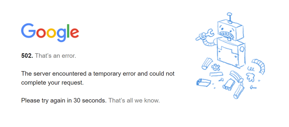 Nhiều người gặp lỗi 502 khi truy cập Google.com sáng nay