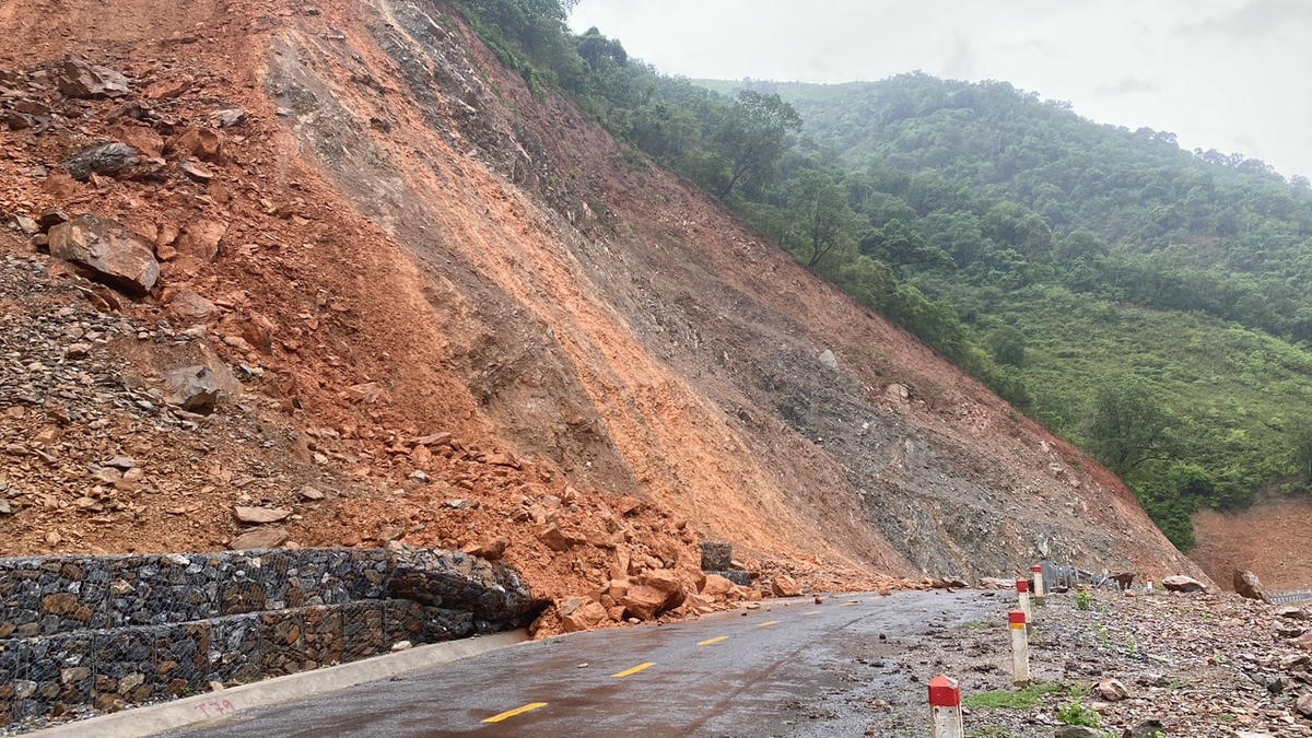 Cụ thể, các điểm sạt lở chắn ngang đường, kéo dài khoảng từ 8-10m, độ cao sạt trượt từ núi xuống khoảng 30m, rất nguy hiểm.