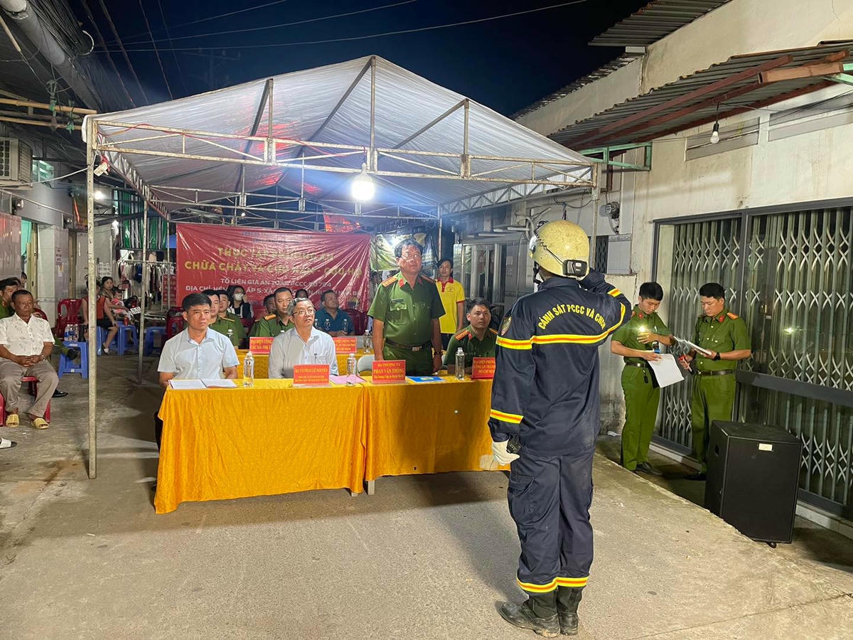Cùng thời điểm này, Công an TP HCM đã chọn buổi thực tập cấp thành phố tại Tổ liên gia đường số 7A (Khu phố 3, phường Bình Trị Đông B, quận Bình Tân). Tham dự và giám sát buổi diễn tập có Thiếu tướng Nguyễn Thanh Hưởng, Phó GĐ Công an TP HCM và Đại tá Huỳnh Quang Tâm, Trưởng phòng Cảnh sát PCCC&CNCH.