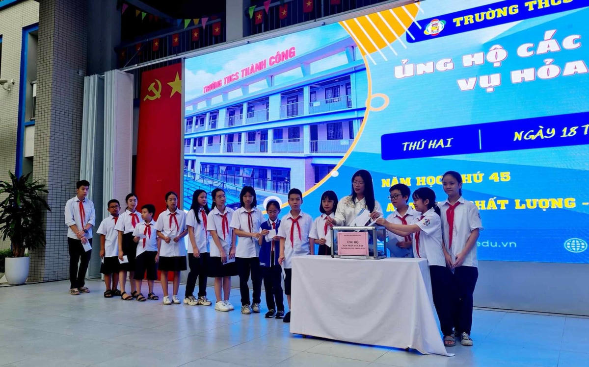 Cô Nguyễn Ngọc Anh, Hiệu trưởng Trường THCS Thành Công (quận Ba Đình, Hà Nội) cho biết: "Lời kêu gọi đã nhận được sự hưởng ứng nhiệt tình của các thầy cô giáo, các cán bộ công nhân viên nhà trường trong cuộc họp hội đồng ngày 14/9. Tiếp theo, trong lễ chào cờ đầu tuần hôm nay, thứ hai (18/9), trường THCS Thành Công tiếp tục phát động ủng hộ nạn nhân trong vụ cháy kinh hoàng tại Khương Hạ, Thanh Xuân đến toàn thể các con học sinh và phụ huynh trong nhà trường. Đến ngày 18/9, trường trung học cơ sở Thành Công đã quyên góp được 70 triệu đồng để hỗ trợ gia đình các nạn nhân".