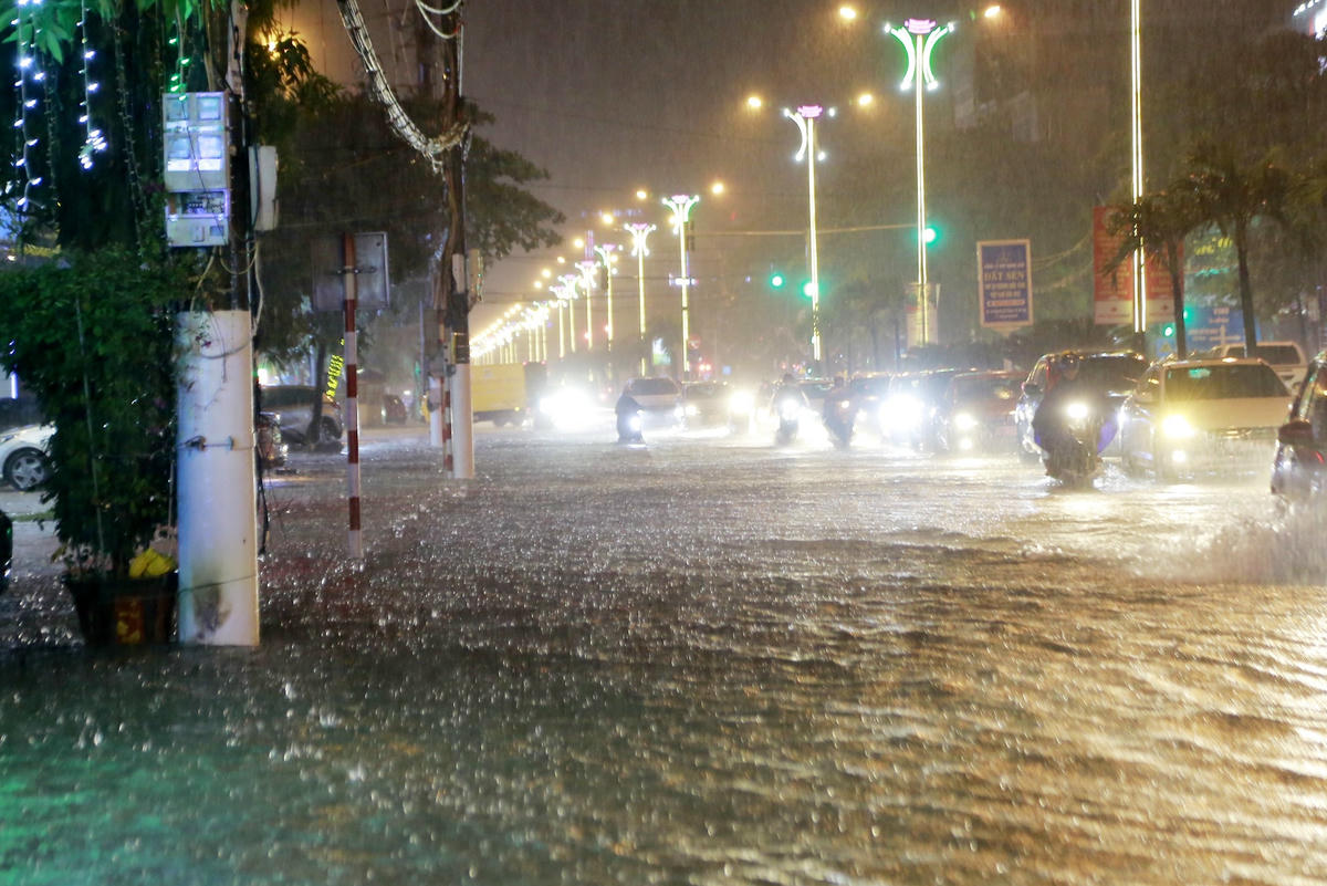Nhiều tuyến đường ở TP Hà Tĩnh ngập sâu sau cơn mưa lớn