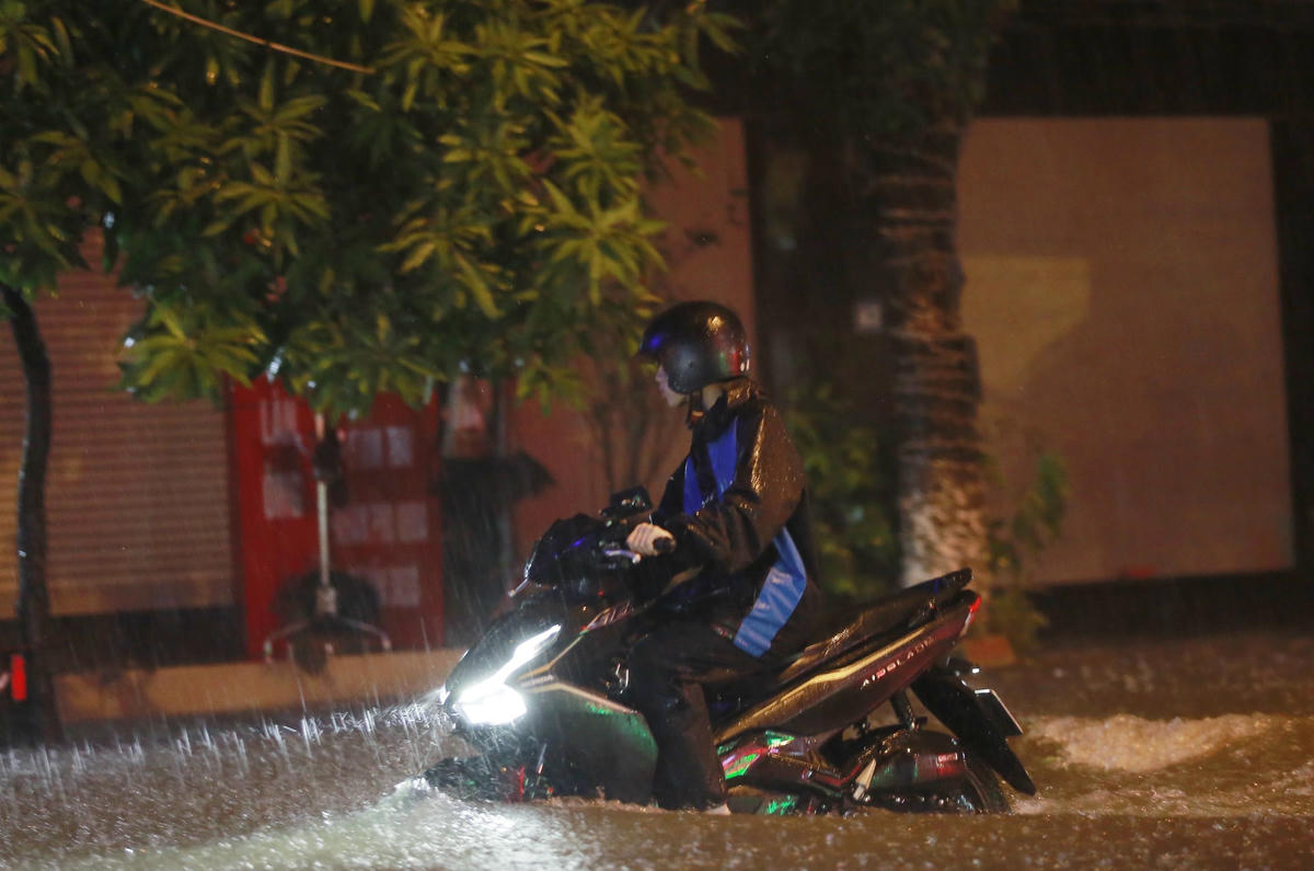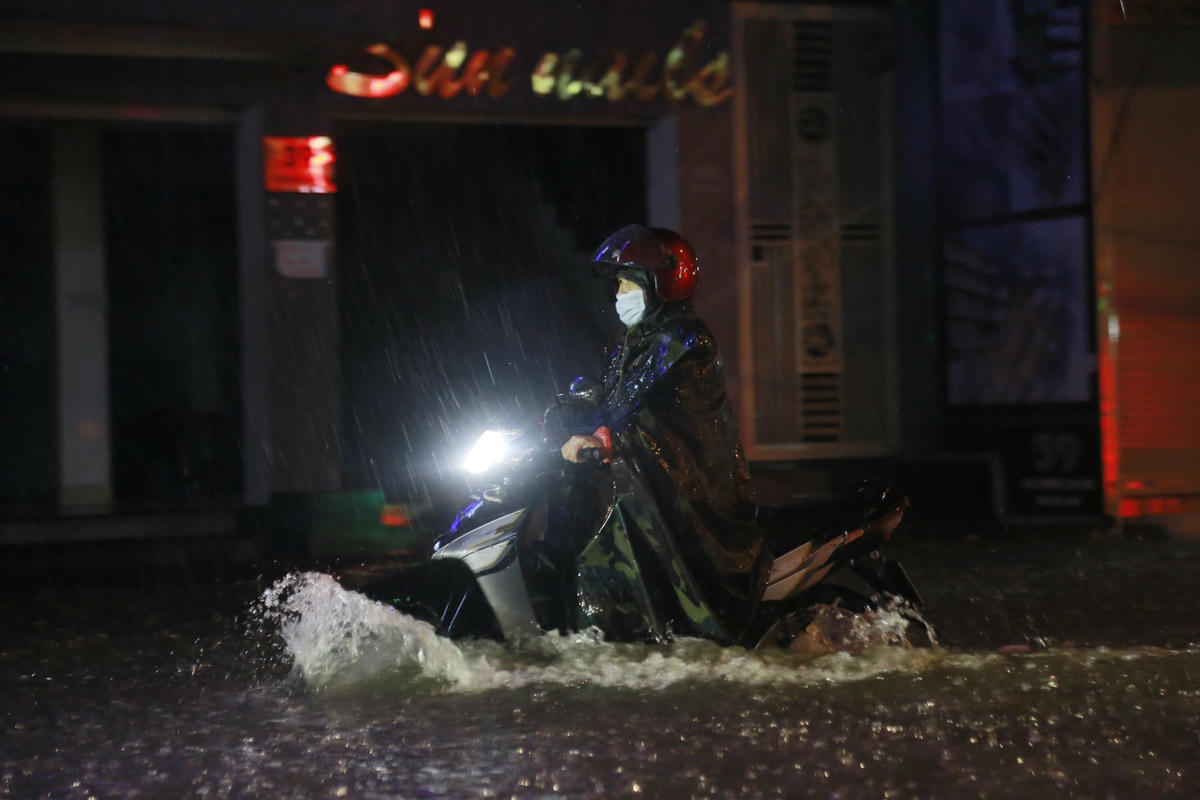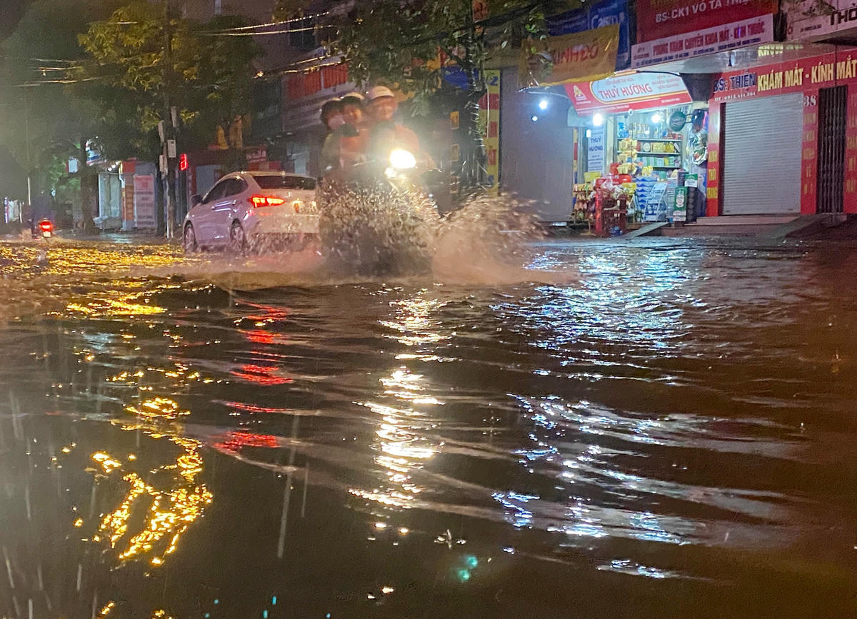 Sau cơn mưa kéo dài, tối 9/9 nhiều tuyến đường ở TP Hà Tĩnh bị ngập sâu trong nước, phương tiện giao thông đi lại gặp khó khăn.