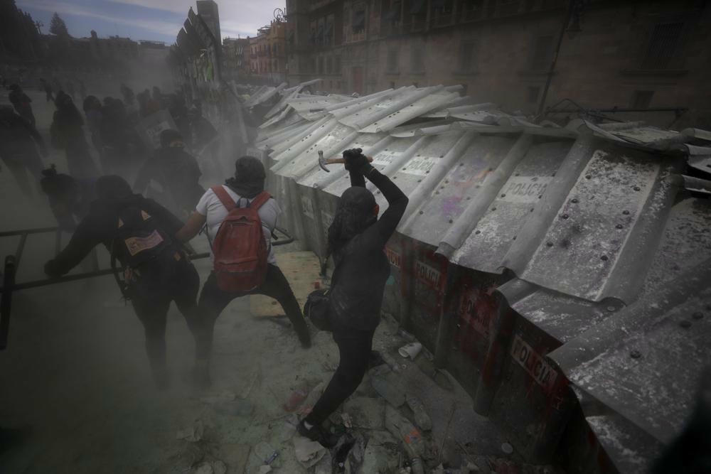 Các chiến binh Yemen dưới sự hậu thuẫn của liên quân do Arab Saudi dẫn đầu rời chiến tuyến Marib, Yemen, vào ngày 19/6/2021. Ảnh: AP. Người biểu tình tấn công hàng rào bảo vệ Cung điện Quốc gia Mexico City trong cuộc tuần hành kỷ niệm Ngày Quốc tế Phụ nữ và phản đối bạo lực giới, vào ngày 8/3/2021. Ảnh: AP. Người di cư Honduras đụng độ với binh lính Guatemala ở Vado Hondo, Guatemala, vào ngày 17/1/2021. Ảnh: AP. Một vụ nổ từ một cuộc không kích của Israel vào một tòa nhà ở thành phố Gaza ngày 13/5/2021. Trận chiến xảy ra khi Hamas và Israel trao đổi thêm tên lửa cùng các cuộc không kích và bạo lực Do Thái - Ả Rập bùng phát khắp Israel vào cuối tháng lễ Ramadan của người Hồi giáo. Ảnh: AP. Sự nổi dậy của các tay súng Taliban đã khuấy đảo không chỉ Afghanistan mà còn là cả thế giới trước vấn nạn khủng bố vào tháng 8/2021. Ảnh: AP Những người biểu tình chống chính phủ tức giận vì đề xuất tăng thuế đối với dịch vụ công, nhiên liệu, tiền lương và lương hưu ở thị trấn Madrid, ngoại ô Bogota, Colombia vào ngày 28/5/2021. Ảnh: AP. Những người đàn ông bế một đứa trẻ đã thiệt mạng được kéo từ đống đổ nát của một tòa nhà dân cư bị phá hủy ở thành phố Gaza sau cuộc không kích của Israel vào ngày 16/5/2021. Ảnh: AP.