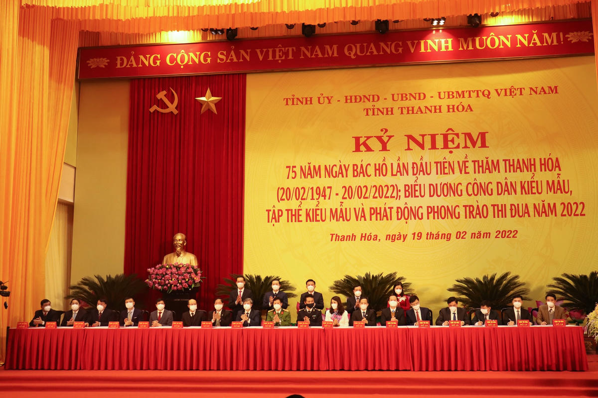 Sáng 19/2, tại Trung tâm hội nghị 25B, tỉnh Thanh Hóa đã long trọng tổ chức lễ kỷ niệm 75 năm ngày Bác Hồ lần đầu tiên về thăm Thanh Hóa (20/2/1947 - 20/2/2022); biểu dương công dân kiểu mẫu, tập thể kiểu mẫu và phát động phong trào thi đua năm 2022.