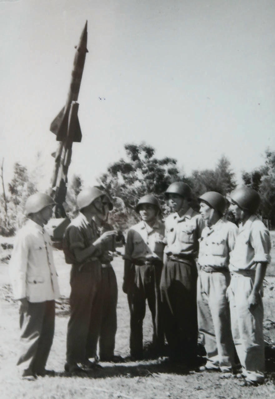 Kíp chiến đấu đã bắn rơi chiếc máy bay Mỹ thứ 2.500 ngày 6/11/1967 của Tiểu đoàn 62. Ông Nguyễn Quang Hùng đứng thứ 3 từ phải sang. (Ảnh: nhân vật cung cấp)