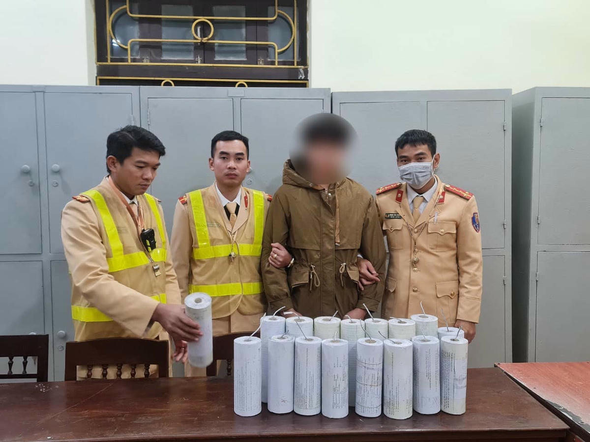 Sau khi được khuyên giải, Tr. đã giao nộp 49 quả pháo nổ tự chế nặng 6,6kg và 2,6kg chất bột các loại nghi là phụ gia để chế tạo pháo (tiền chất).