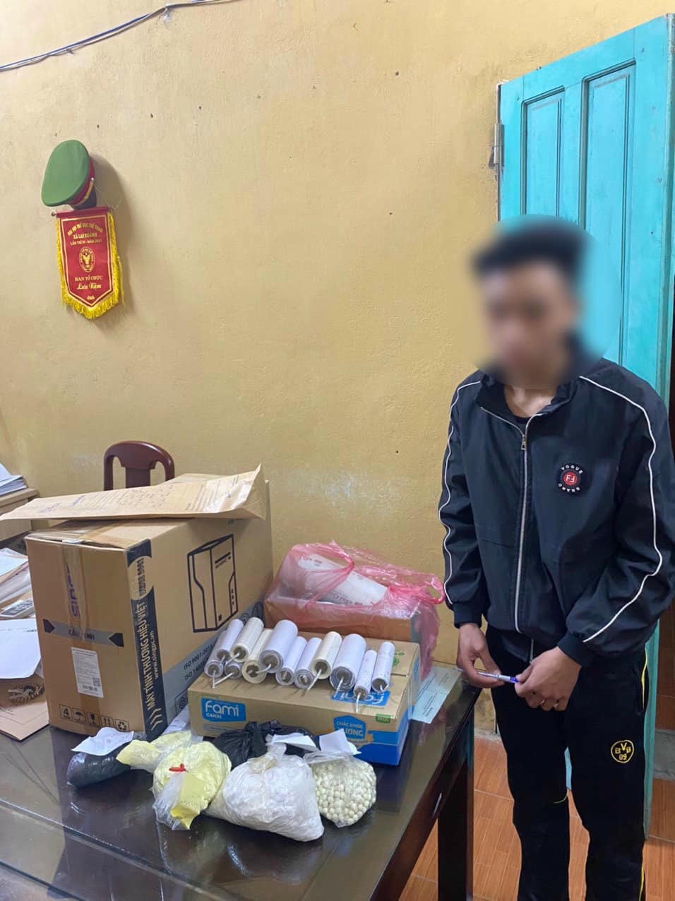Trước đó, ngày 7/1, nhận được tin báo của quần chúng nhân dân về việc V.X.Tr (16 tuổi, trú tại xóm 7B xã Lai Thành) có biểu hiện sản xuất pháo trái phép, Công an đã triệu tập, làm việc với Tr.. Sau đó, Tr. khai nhận cách đây 1 tháng có mua thuốc pháo cùng một số phụ kiện trên mạng xã hội và bắt đầu chế pháo nổ; cất giữ ở nhà để sử dụng dịp Tết.