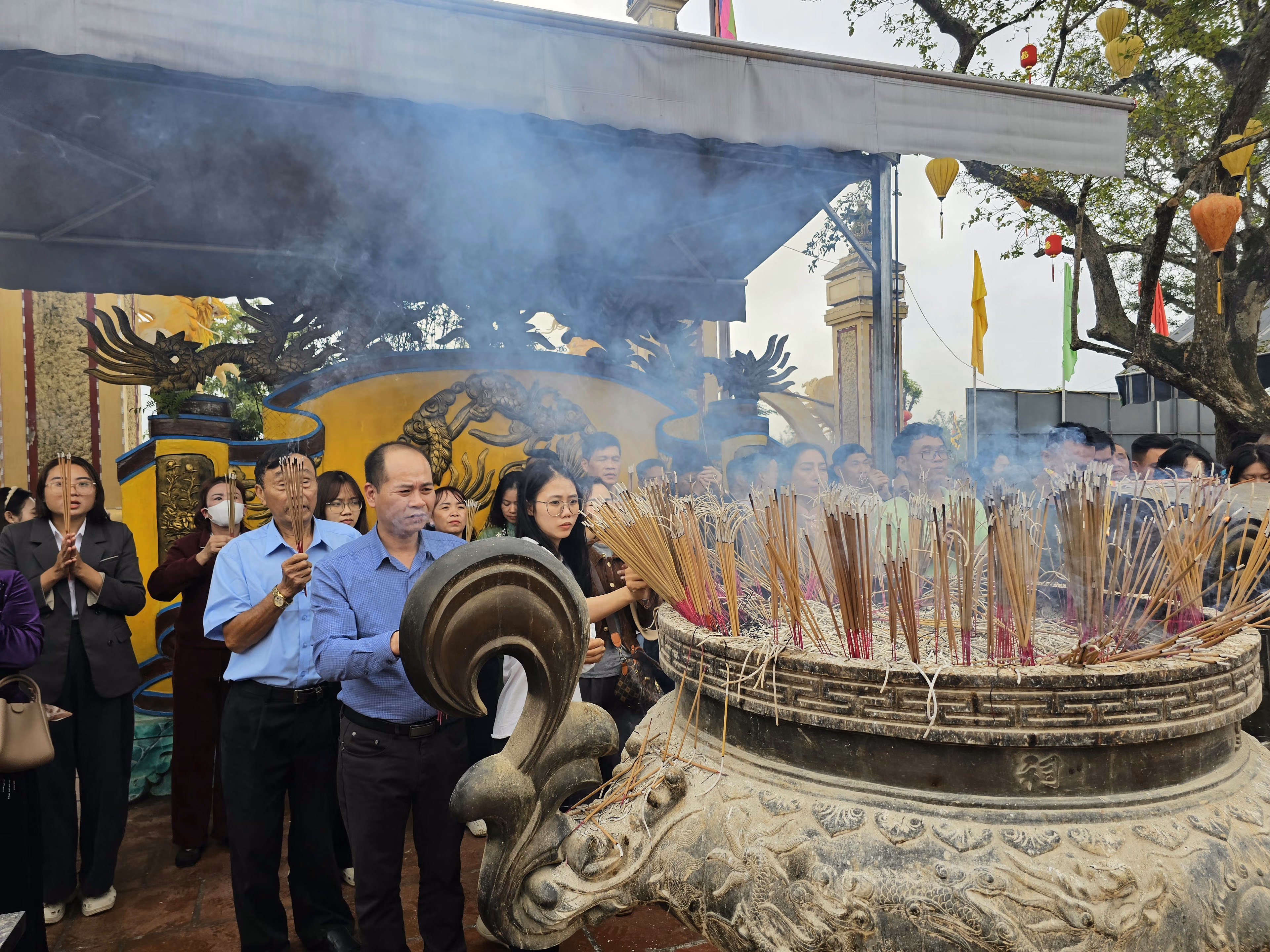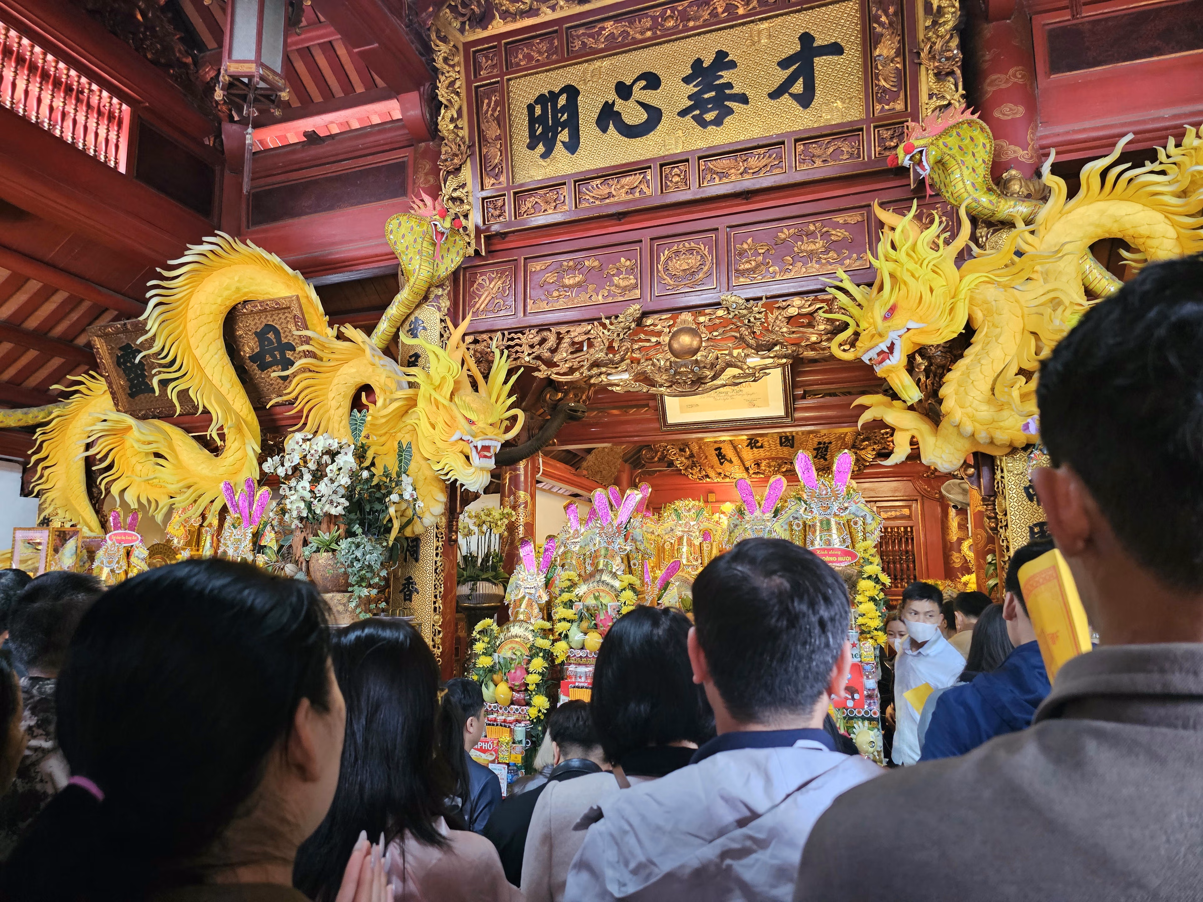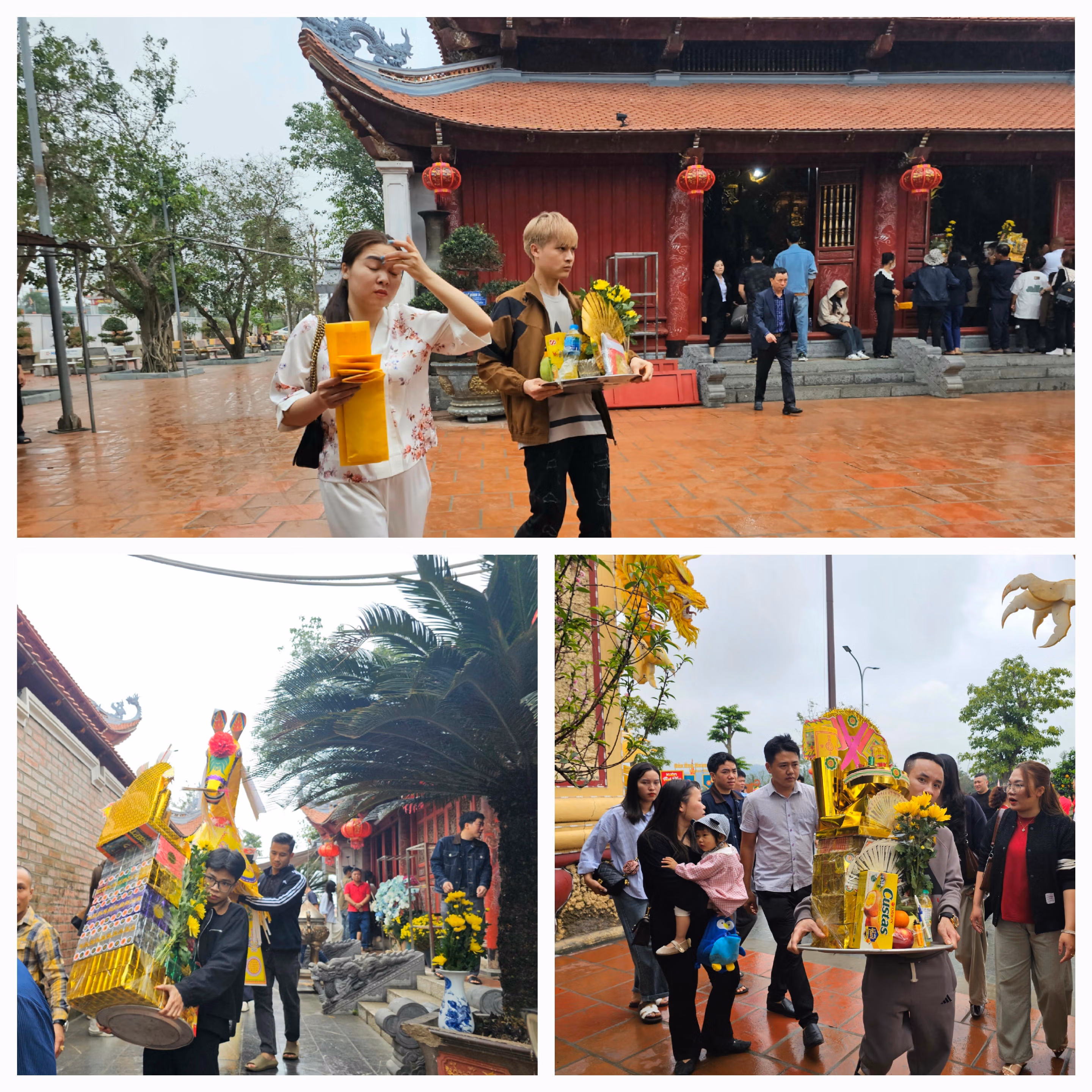 Nhộn nhịp du khách về đền Ông Hoàng Mười chiêm bái dịp đầu năm Thứ Tư 25/02/2026 15:43 (GMT+7) Những ngày đầu năm mới Bính Ngọ 2026, đông đảo người dân đến đền ông Hoàng Mười để cầu sức khỏe, bình an và tài lộc cho bản thân và gia đình. Nằm bên dòng Lam đoạn qua địa phận xã Hưng Nguyên, đền ông Hoàng Mười từ lâu được xem là một trong sáu ngôi đền linh thiêng bậc nhất Nghệ An. Ngôi đền cũng là một địa điểm hấp dẫn để mọi người có thể khám phá những nét văn hóa đặc sặc gắn với tín ngưỡng thờ Mẫu - một di sản văn hóa phi vật thể của nhân loại đã được UNESCO công nhận. Năm 2002, đền ông Hoàng Mười được tỉnh Nghệ An xếp hạng Di tích lịch sử văn hóa. Năm 2019, lễ hội Đền Hoàng Mười được công nhận là di sản văn hóa phi vật thể Quốc gia. Ảnh: Quốc ThanhNơi đây mỗi năm đón hàng vạn người dân xứ Nghệ và du khách thập phương đến chiêm bái, đặc biệt, mỗi dịp Tết đến Xuân về. Ảnh: Quốc ThanhNhững ngày đầu năm mới Bính Ngọ 2026, đông đảo người dân sắm lễ đến đền ông Hoàng Mười chiêm bái, cầu sức khỏe, bình an và tài lộc cho bản thân và gia đình. Ảnh: Quốc ThanhAi cũng thành tâm thắp hương mong cầu những điều tốt đẹp nhất đến với mình và người thân. Ảnh: Quốc ThanhDu khách hành lễ tại thượng điện của đền. Ảnh: Quốc ThanhAnh Quách Văn Điệp, 29 tuổi, ở Bắc Ninh cùng người thân chụp ảnh lưu lại kỷ niệm tại đền ông Hoàng Mười. "Đầu năm đến đền tham quan, thắp hương, chiêm bái, để cầu cho bản thân và gia đình một năm Bính Ngọ 2026 thật nhiều sức khỏe, bình an và gặp nhiều may mắn", anh Điệp bày tỏ. Ảnh: Quốc Thanh Du khách chuẩn bị lễ gồm hoa quả, bánh kẹo, hương vàng,... tại nhà sắp lễ của đền ông Hoàng Mười. Ảnh: Quốc ThanhNhững ngày đầu năm mới, người dân đi lễ đông, dịch vụ viết sớ lễ cũng trở nên "đắt khách". Ảnh: Quốc ThanhBên ngoài khu vực đền được trang trí các tiểu cảnh bắt mắt với 2 màu đỏ vàng chủ đạo biểu tượng cho sự may mắn thu hút nhiều du khách "check-in" sau khi hành lễ. Ảnh: Quốc Đền Ông Hoàng Mười không chỉ là nơi thờ cúng mà còn là điểm du lịch tâm linh hấp dẫn đối với nhiều du khách. Ảnh: Quốc Thanh Quốc Thanh