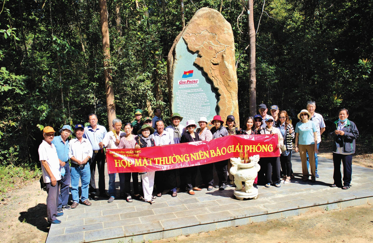 Cuối tháng 6/2017, chúng tôi chung tiền và được một doanh nhân, hai quan chức giúp đỡ, đã dựng được tấm bia bằng đá khối kỷ niệm Báo Giải phóng tại nơi Tòa soạn trú đóng lâu nhất ở chiến khu Bắc Tây Ninh, bên một nhánh của thượng nguồn sông Vàm Cỏ Đông. Dựng bia cũng là dịp anh chị em chúng tôi gặp nhau giữa rừng. Cậu “em út” làm giao liên của báo những năm cuối cuộc chiến, đã ngoài 60, huống chi lớp trước, ngoài 17 người hy sinh, cứ rơi rụng theo thời gian.